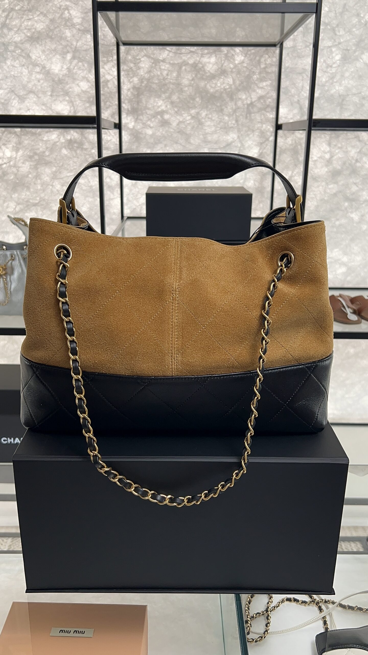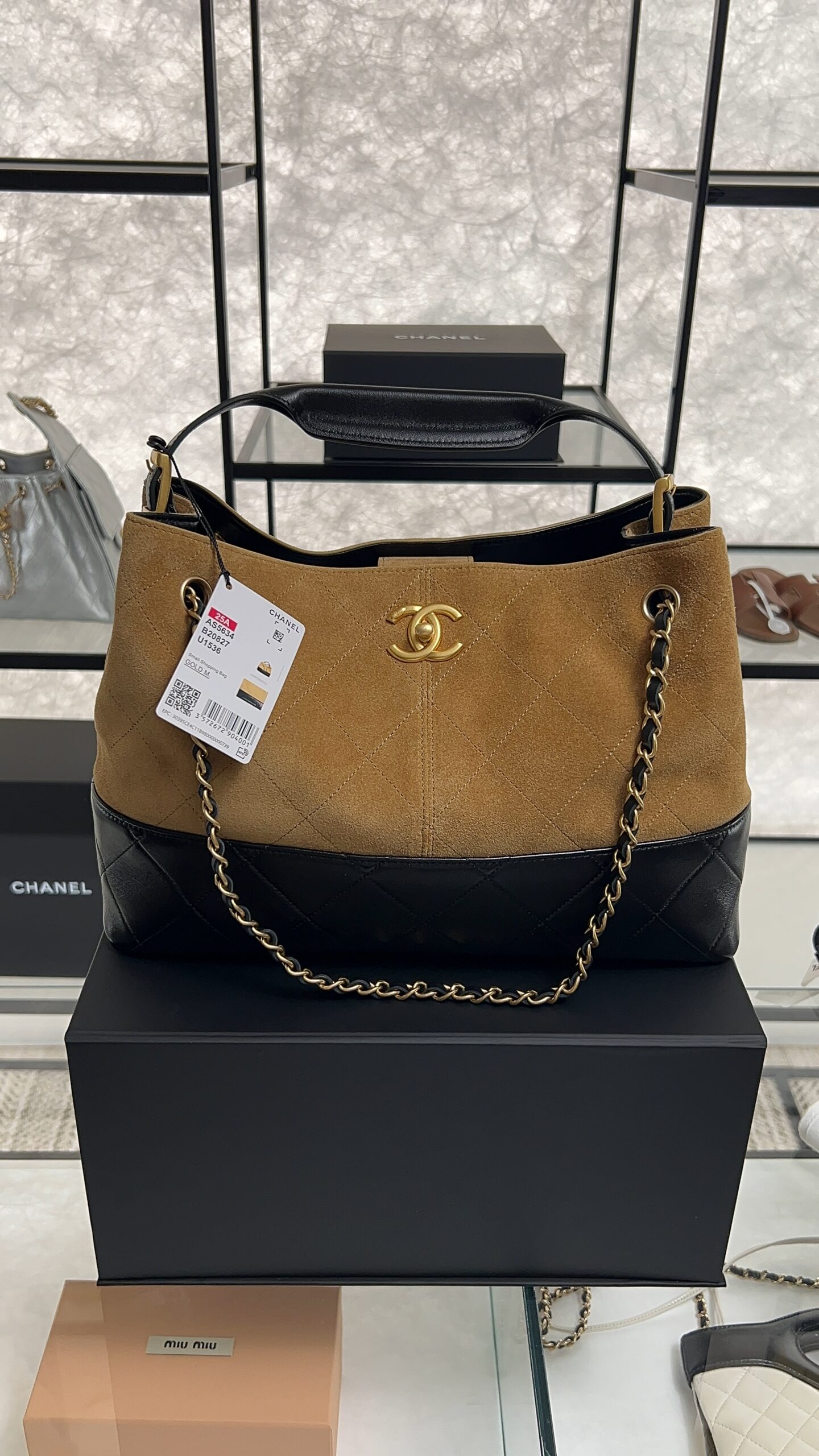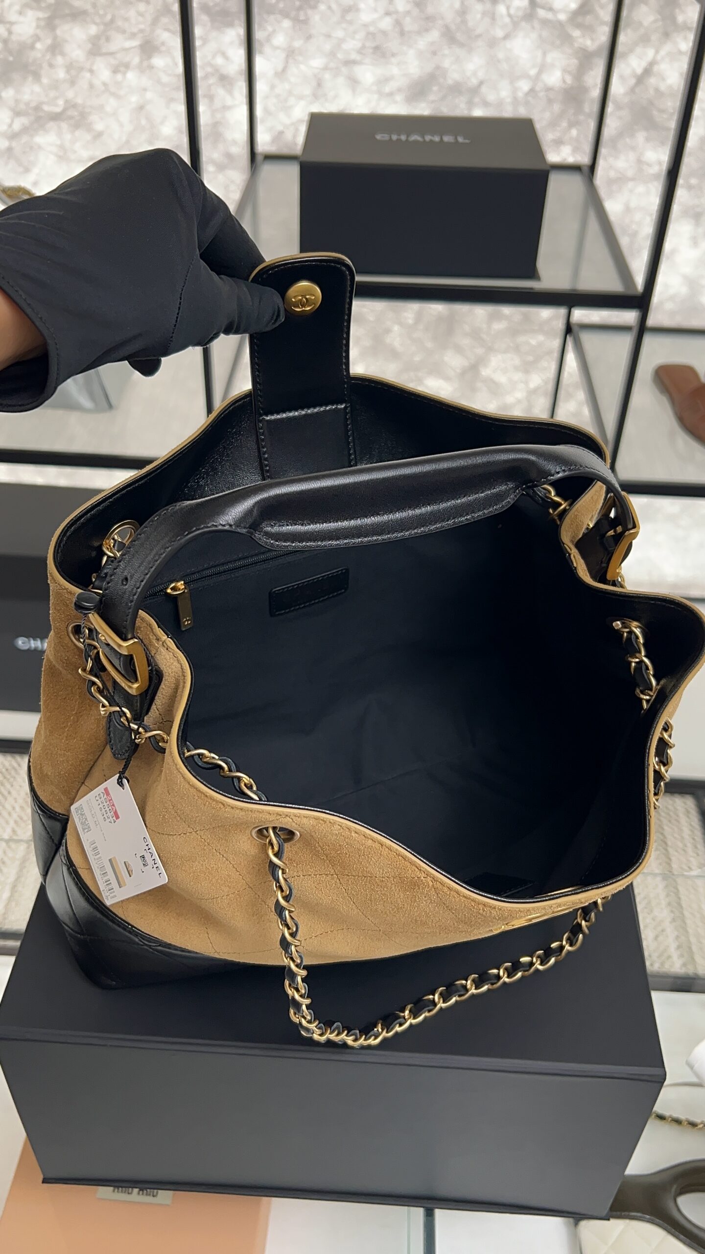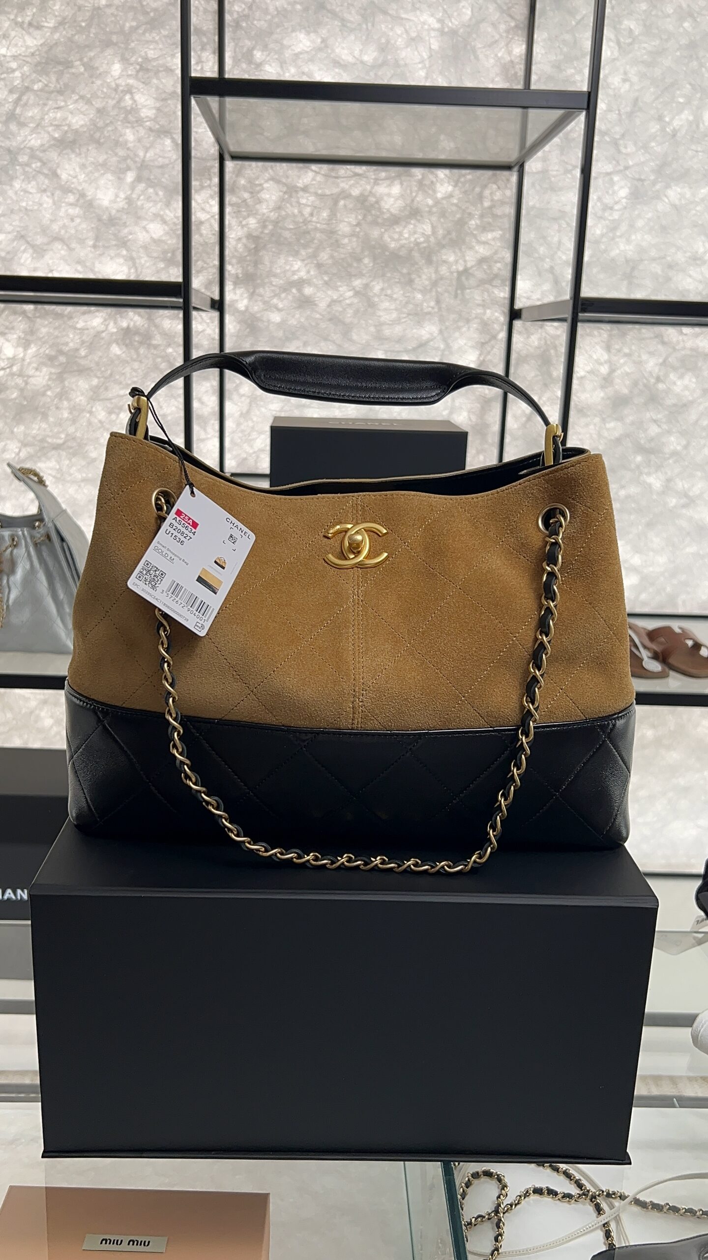• CHANEL 2024/25 Métiers d’art Shopping Bag Suede Calfskin, Shiny Lambskin & Gold-Tone Metal Beige & Black