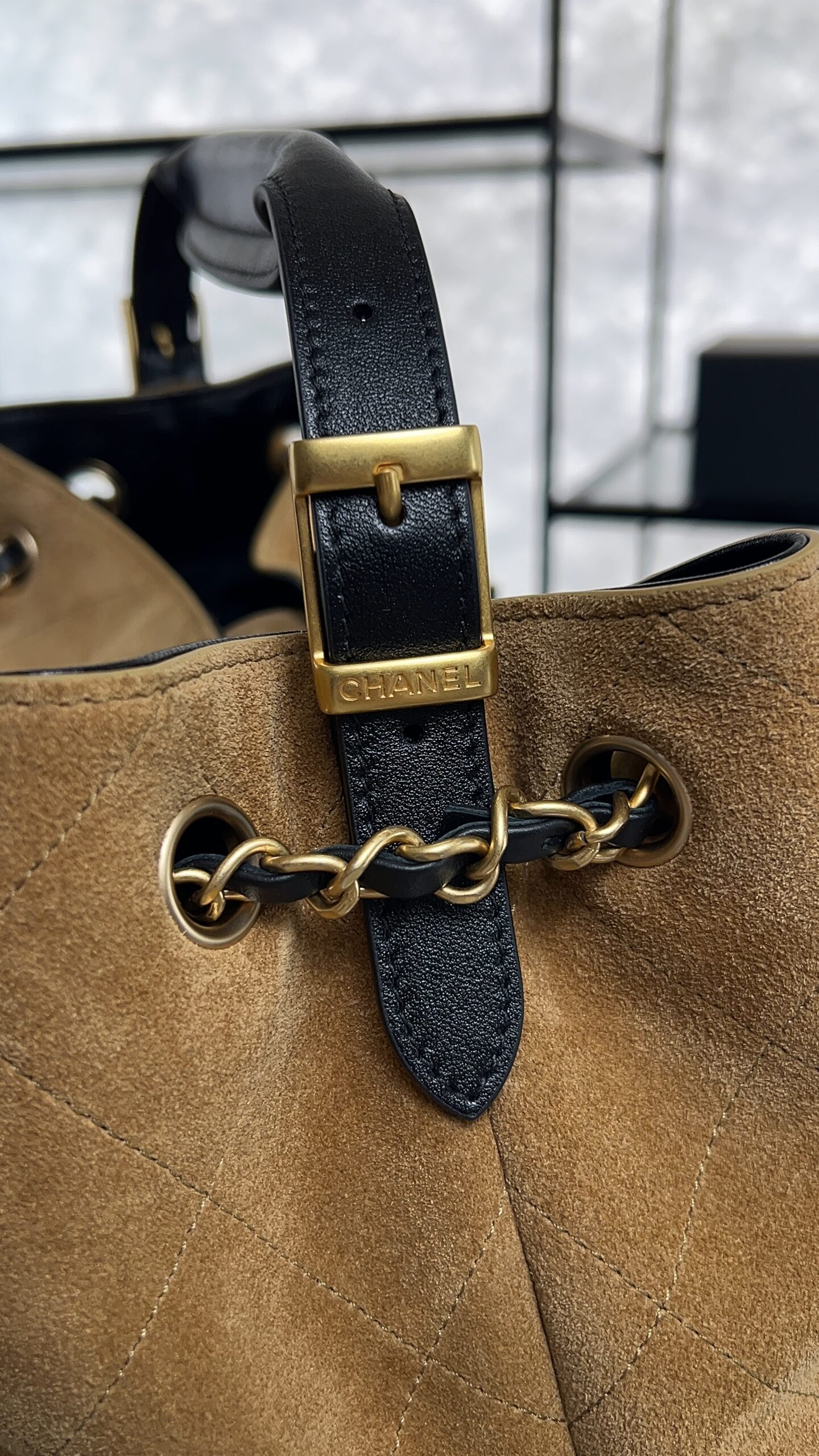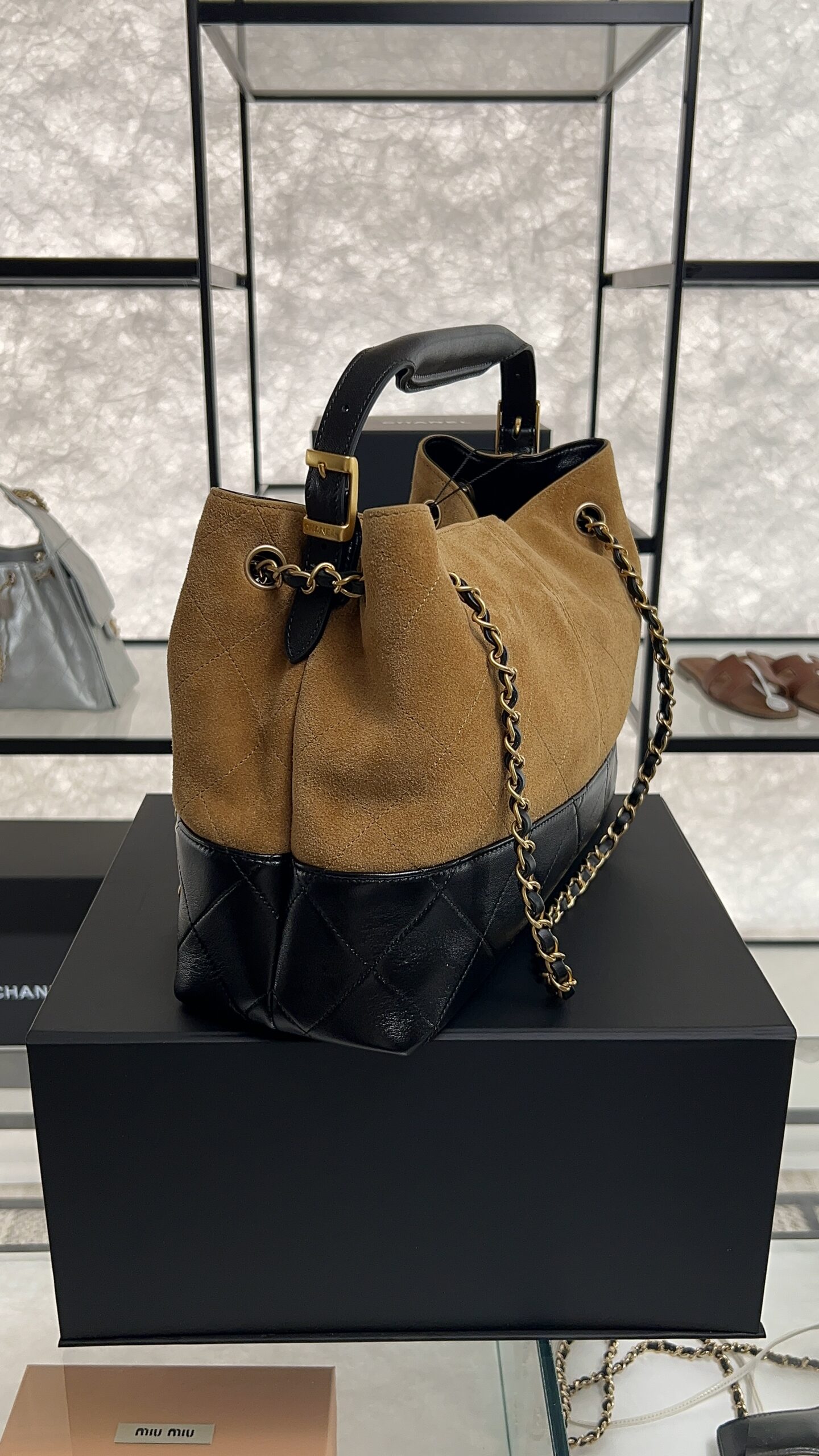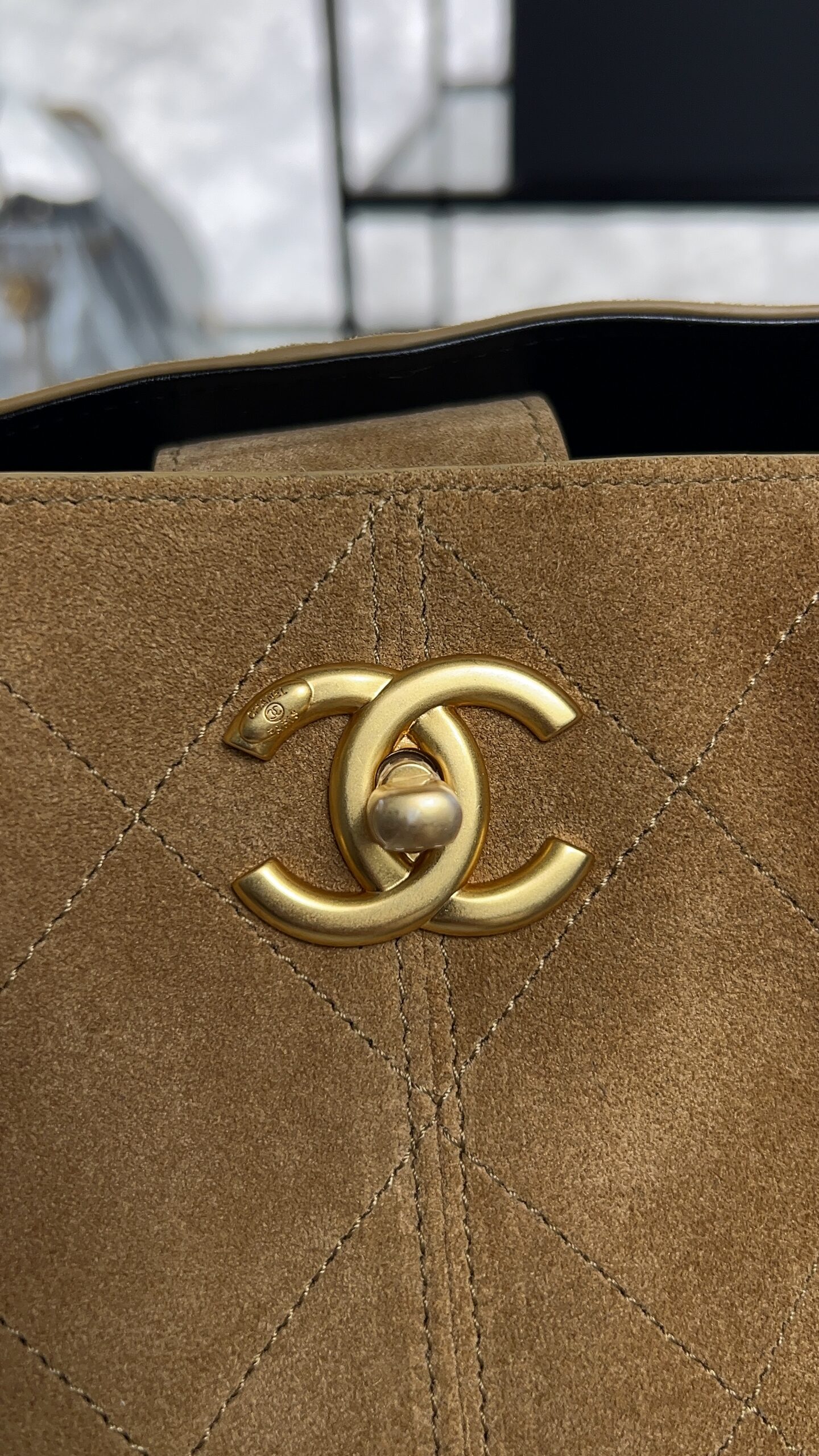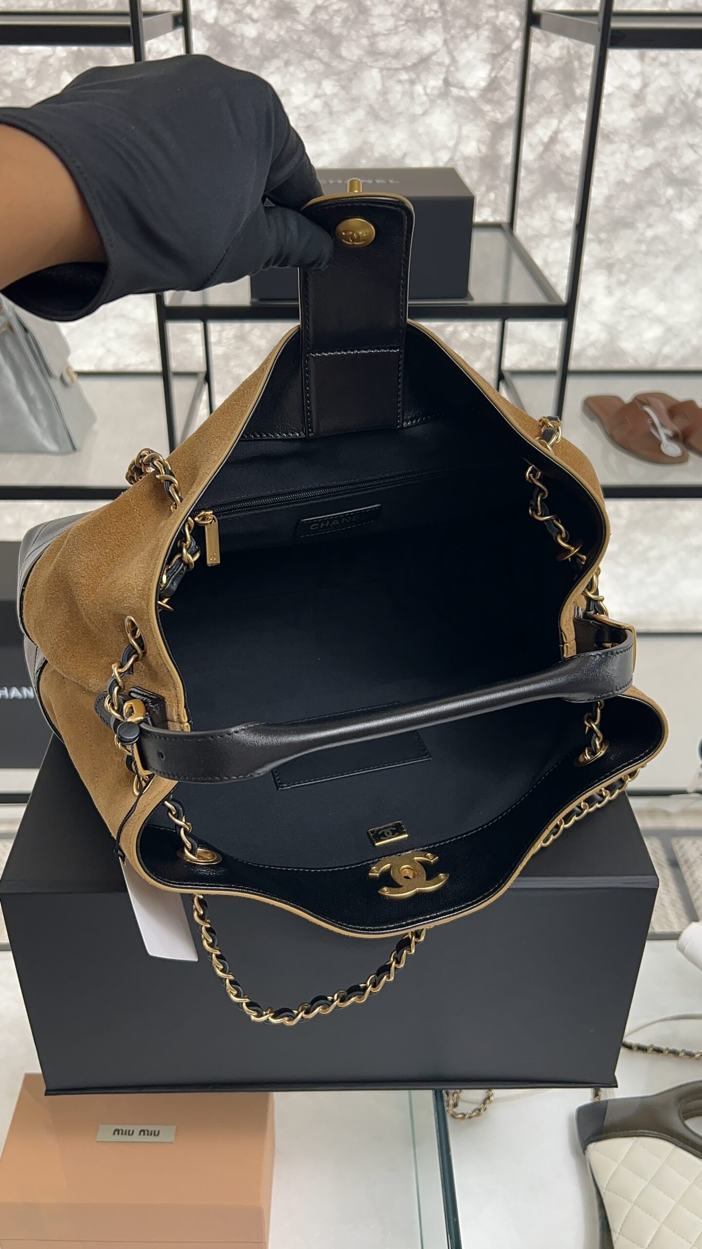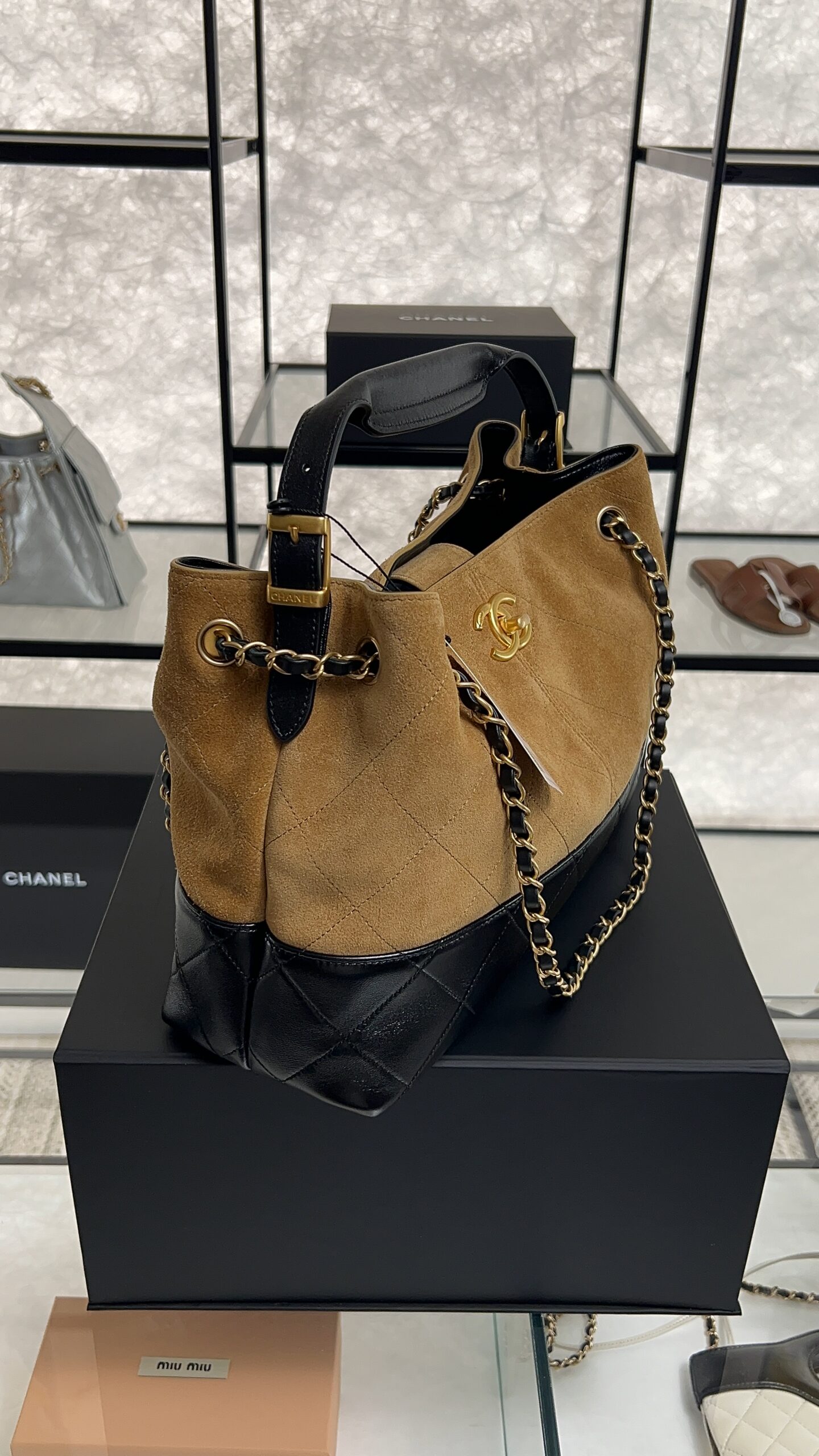 • CHANEL 2024/25 Métiers d’art Shopping Bag Suede Calfskin, Shiny Lambskin & Gold-Tone Metal Beige & Black