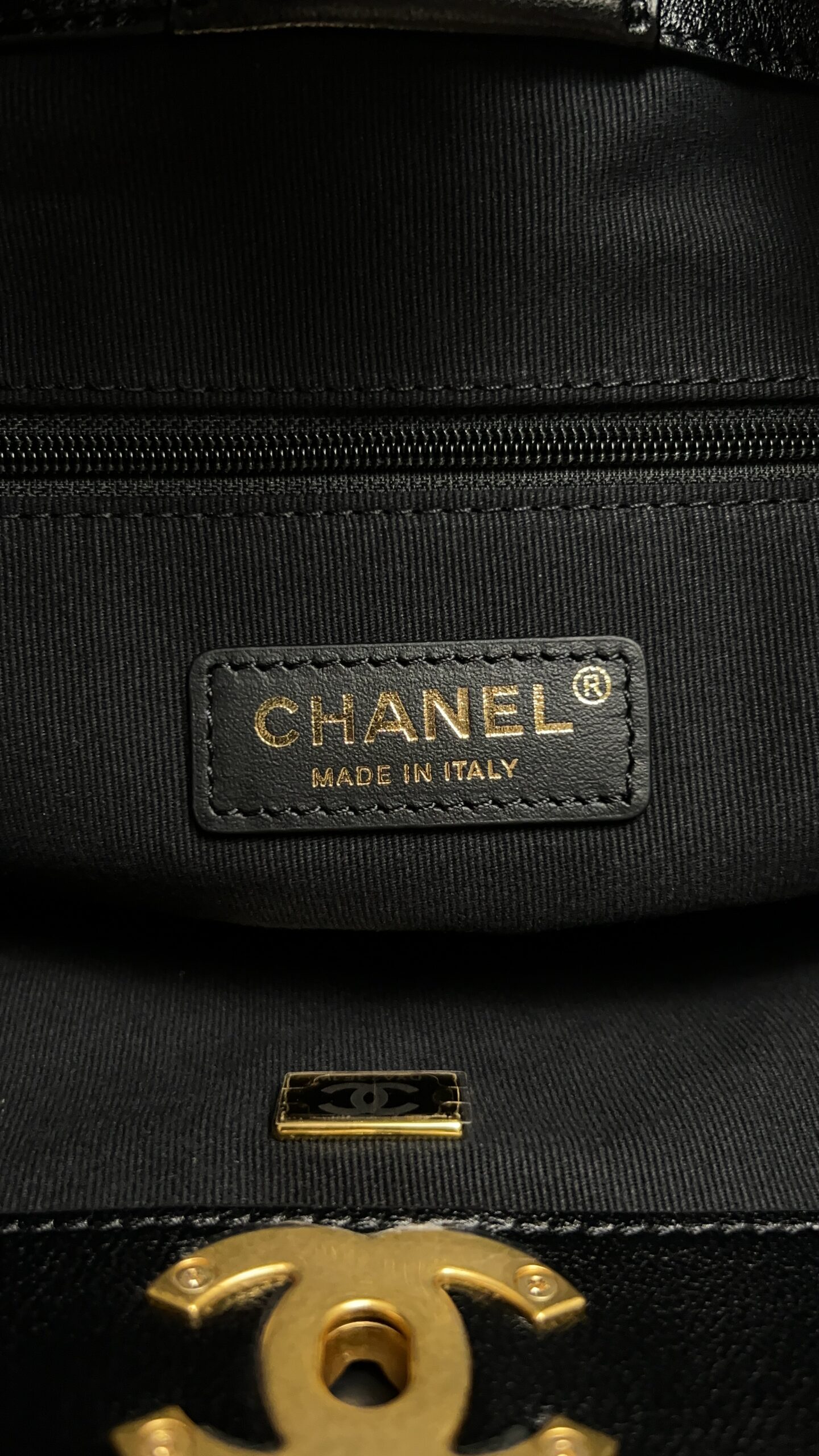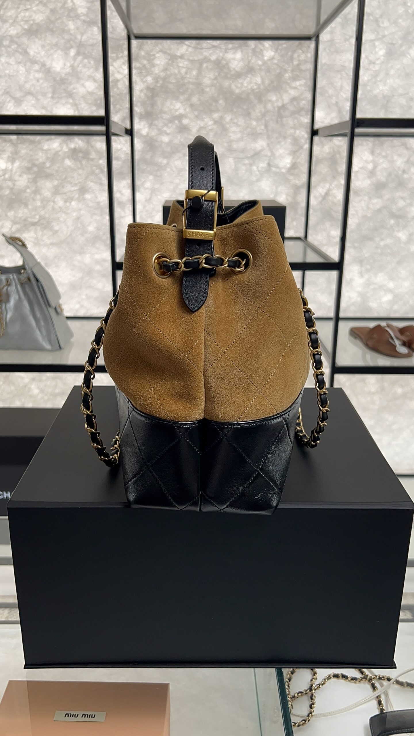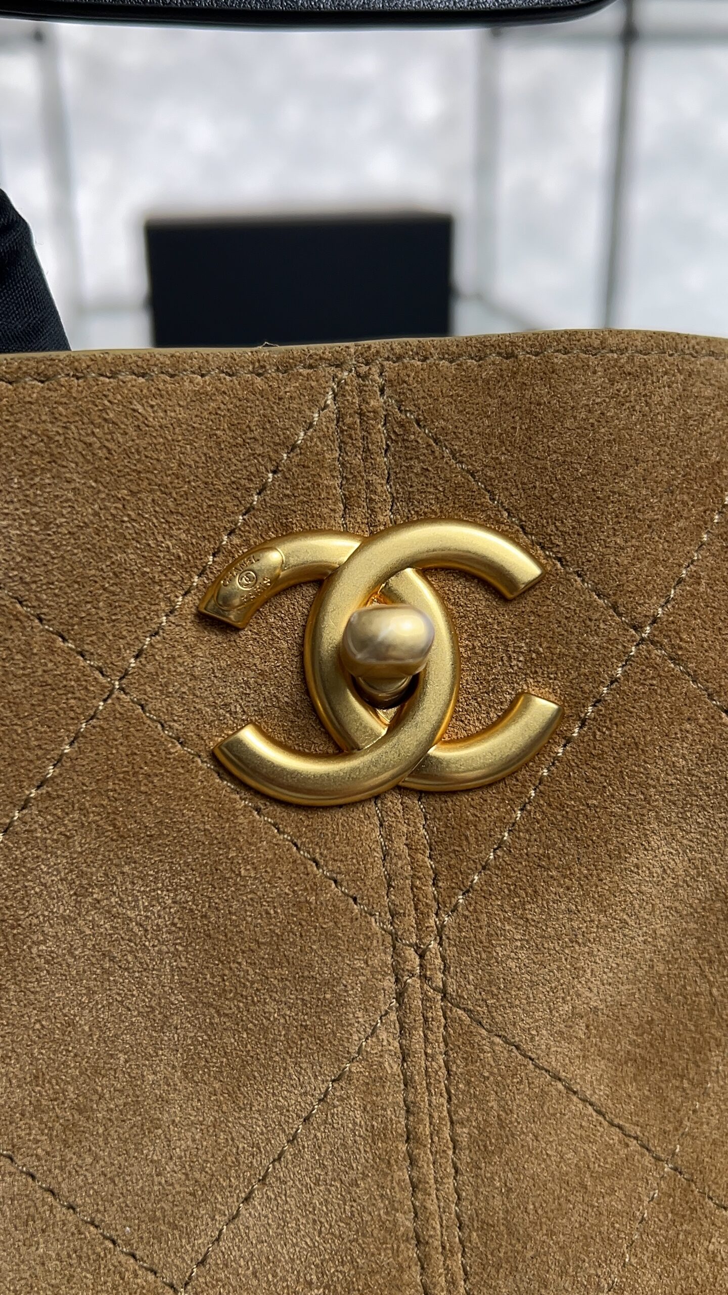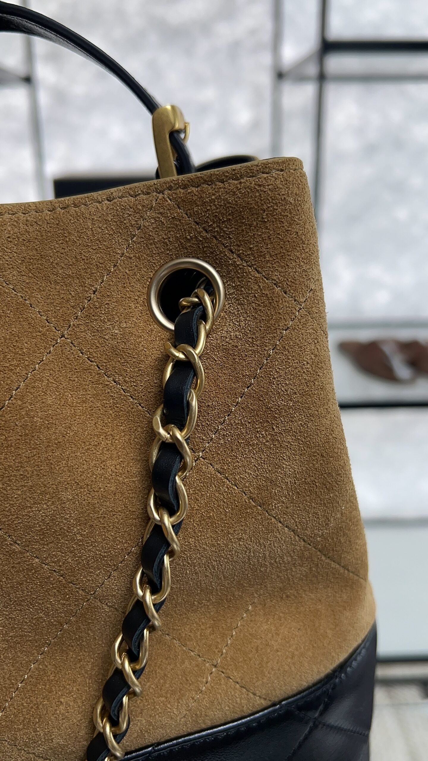 • CHANEL 2024/25 Métiers d’art Shopping Bag Suede Calfskin, Shiny Lambskin & Gold-Tone Metal Beige & Black