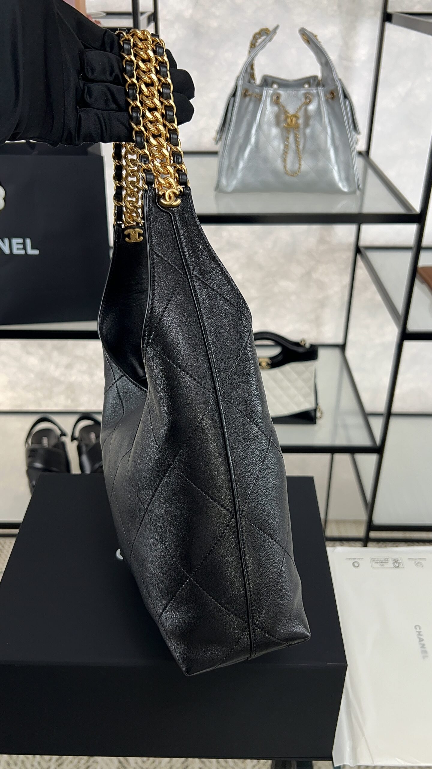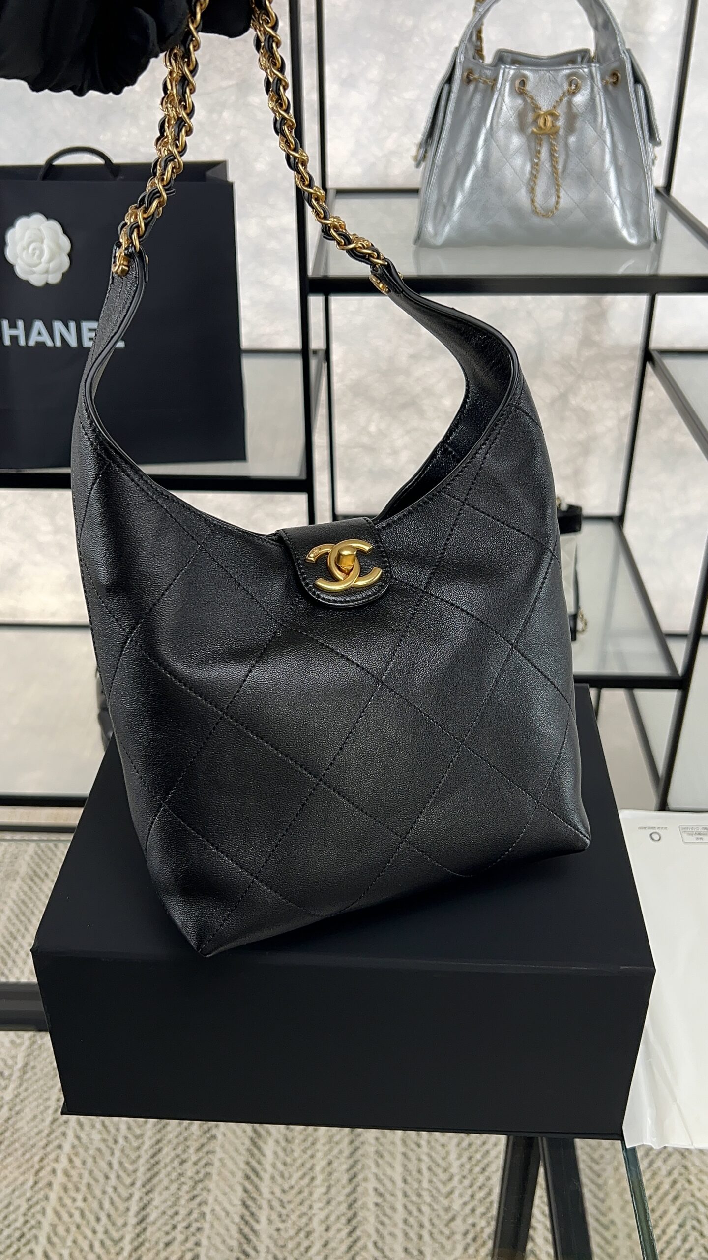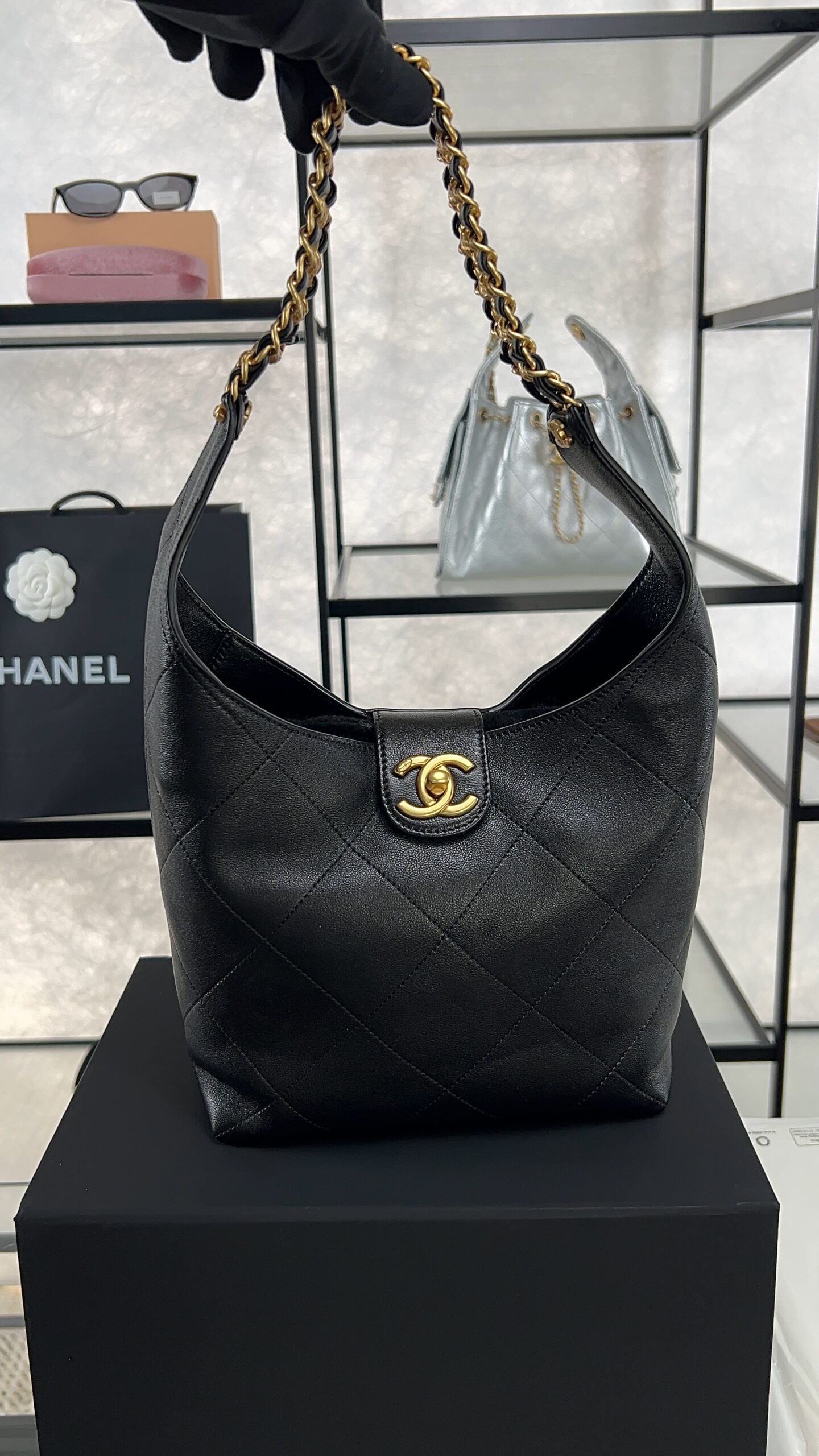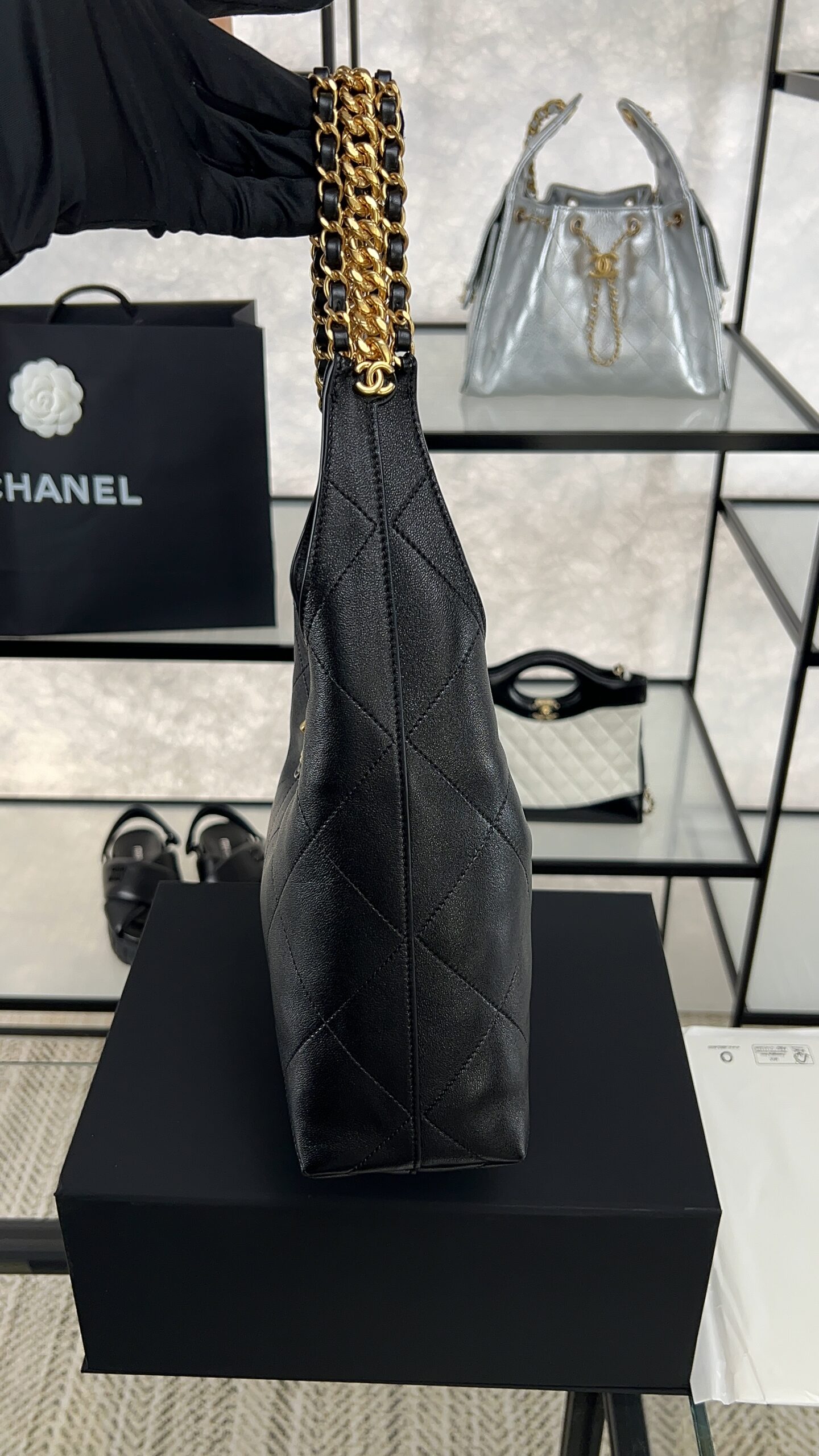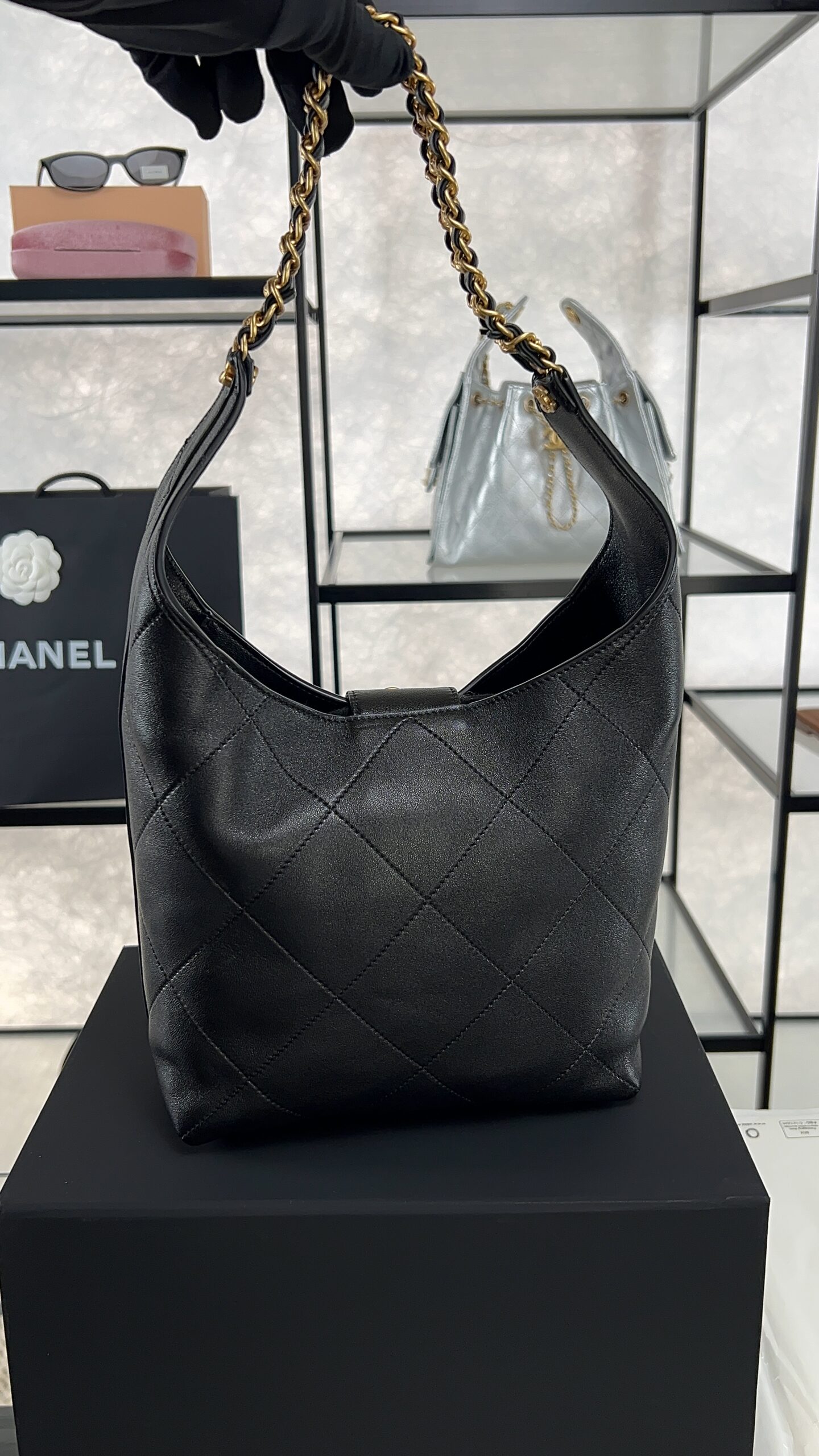 CHANEL 2025 Quilted Chain Hobo Black, Small