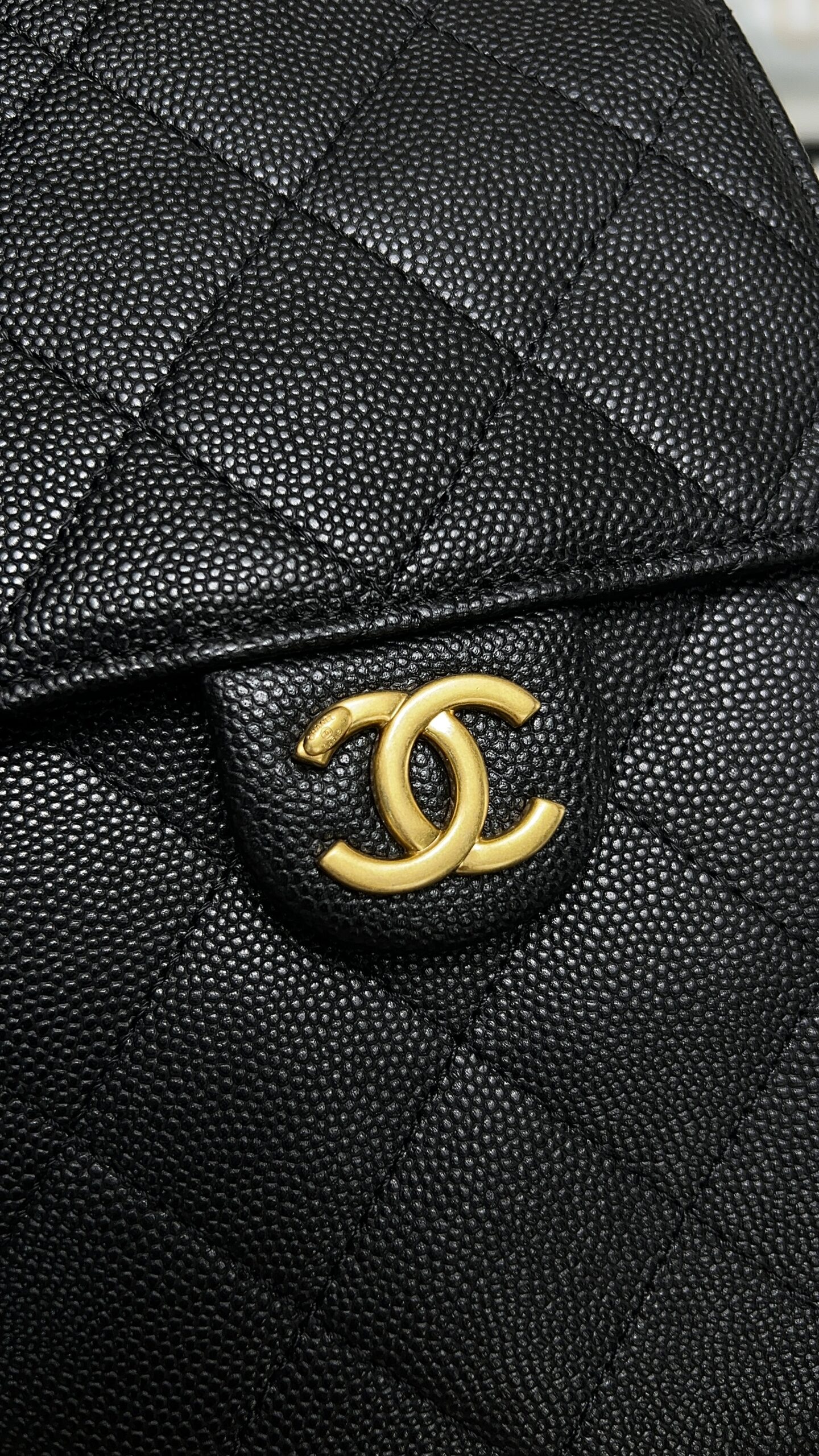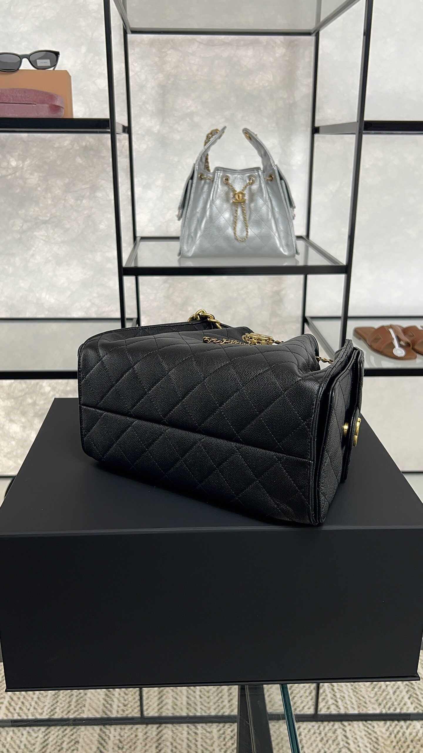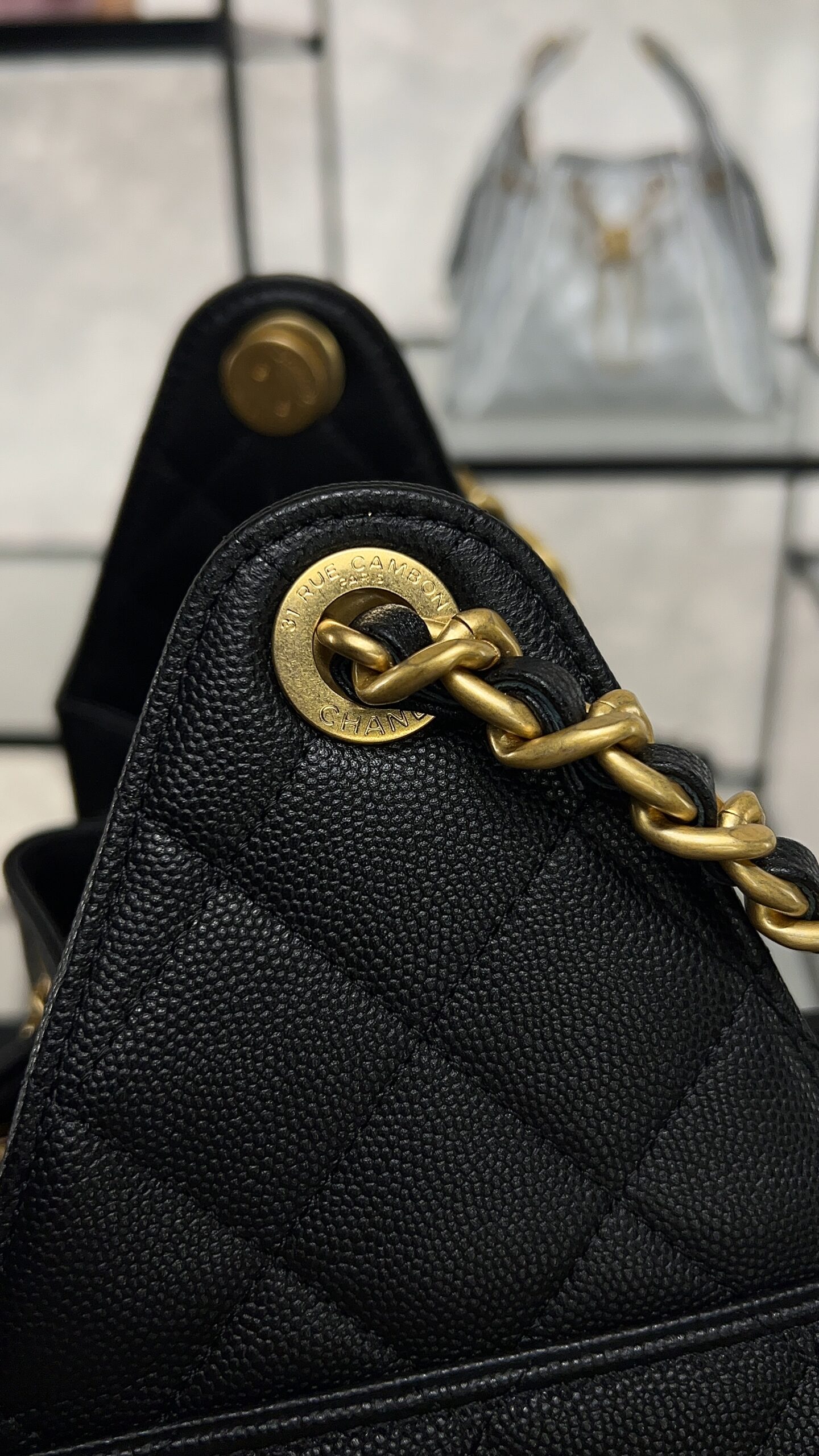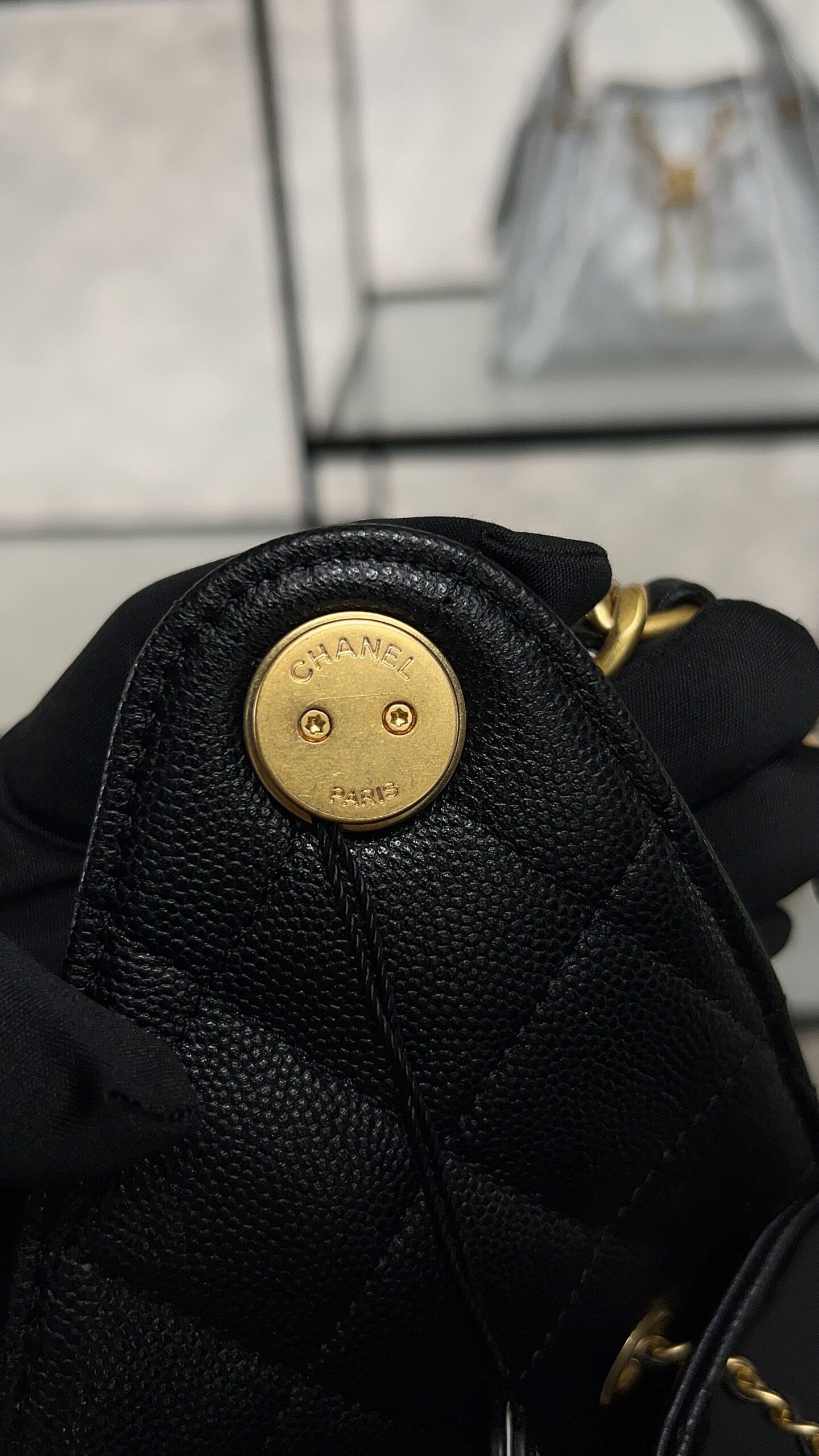 • CHANEL 25 Small Handbag Grained Calfskin & Gold-Tone Metal Black
