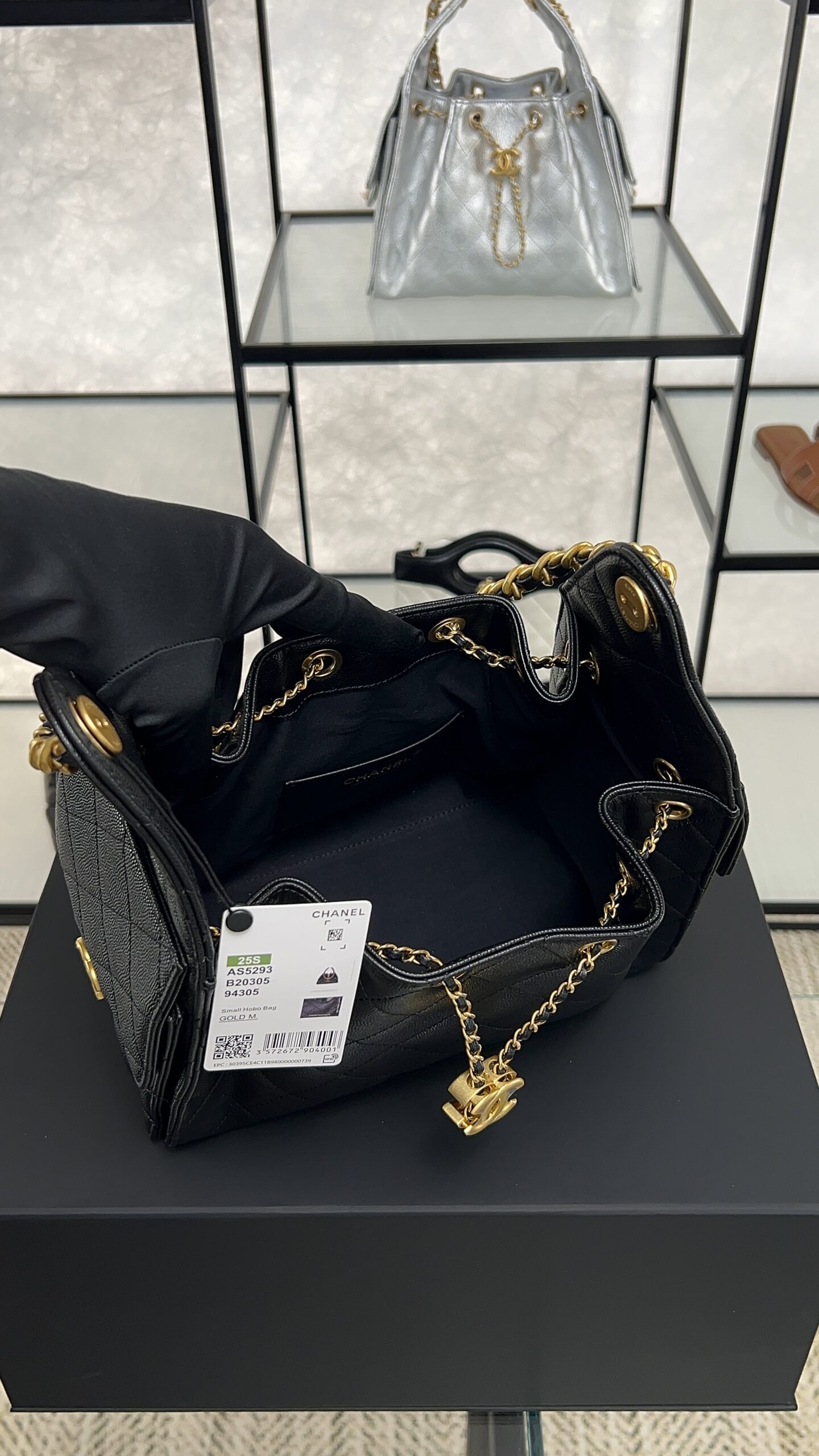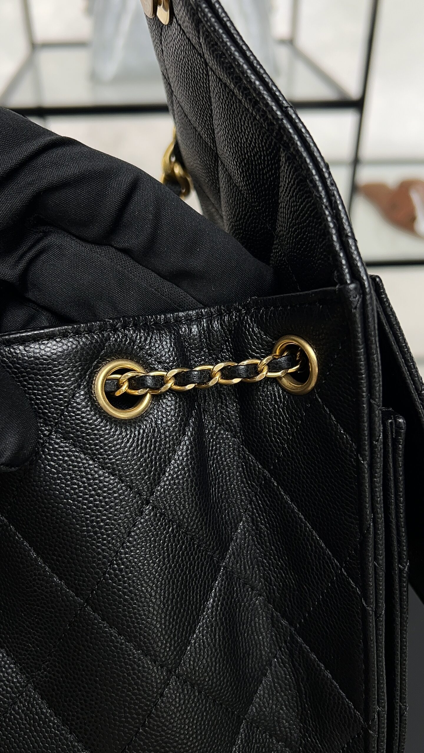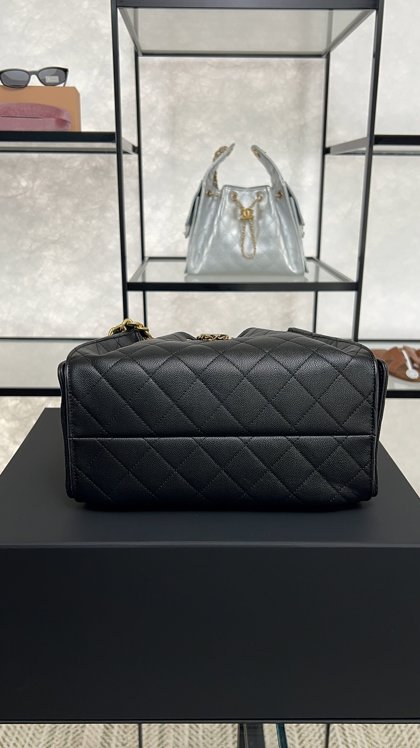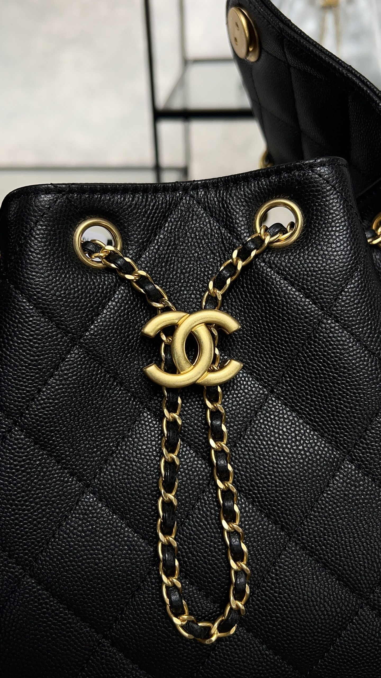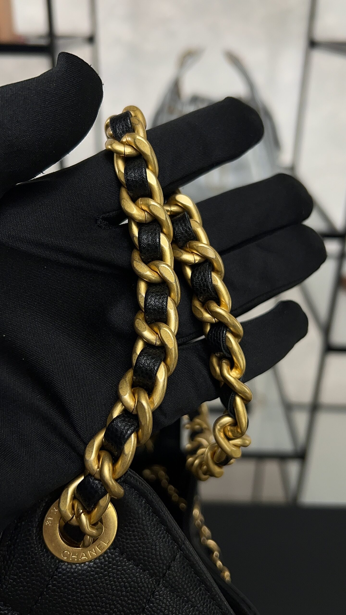 • CHANEL 25 Small Handbag Grained Calfskin & Gold-Tone Metal Black
