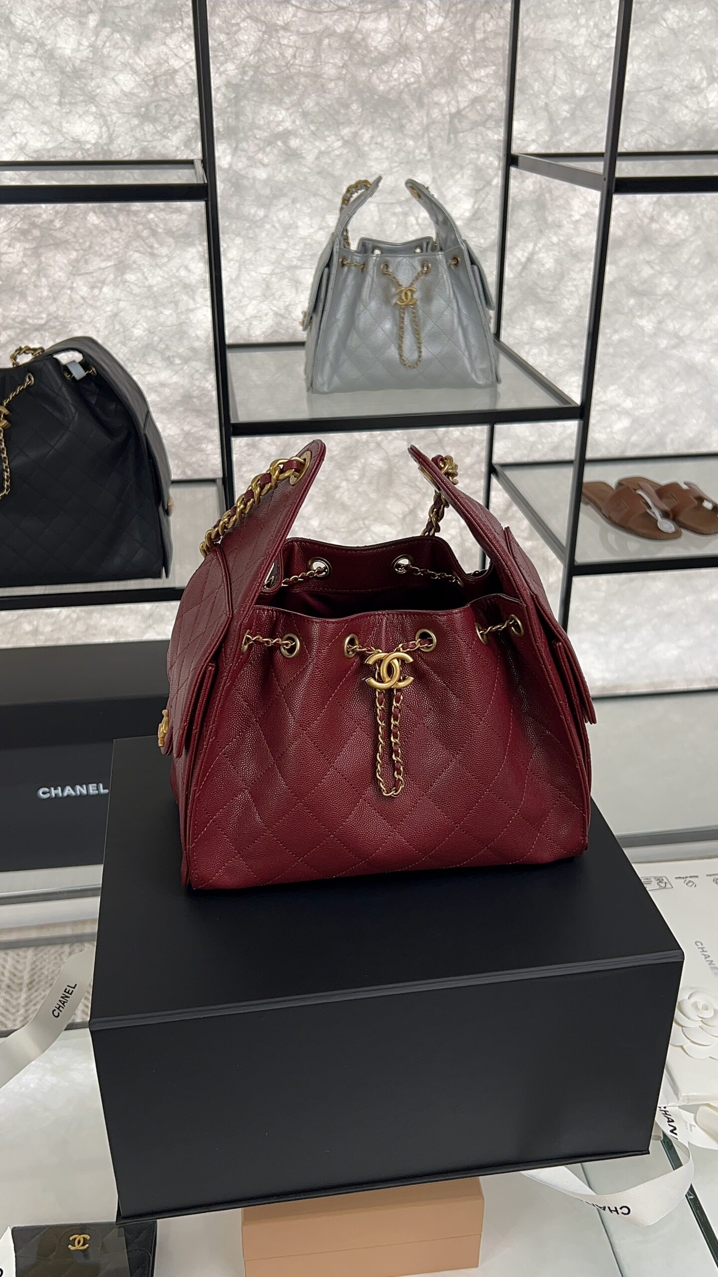 • CHANEL 25 Small Handbag Grained Calfskin & Gold-Tone Metal Burgundy