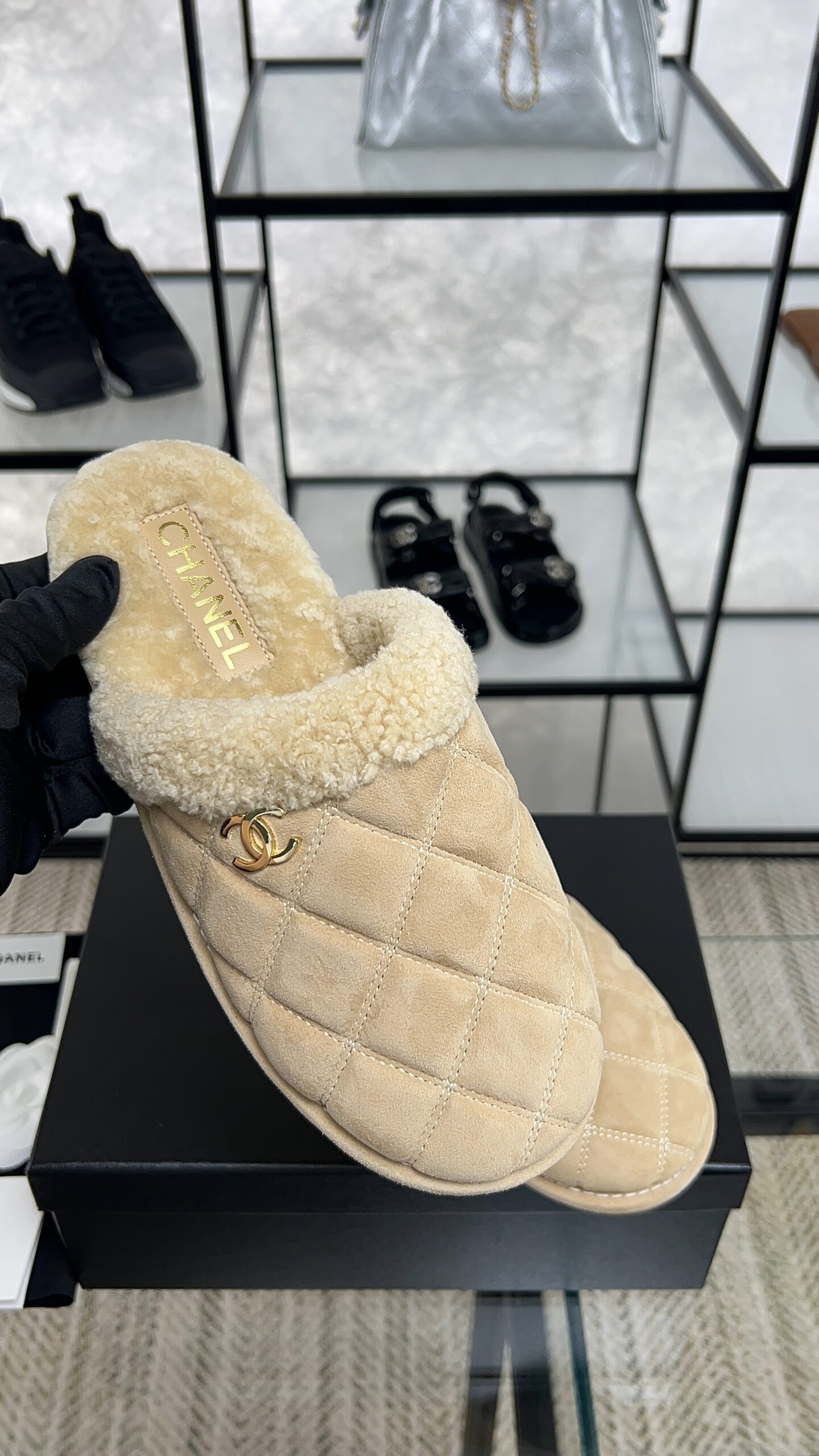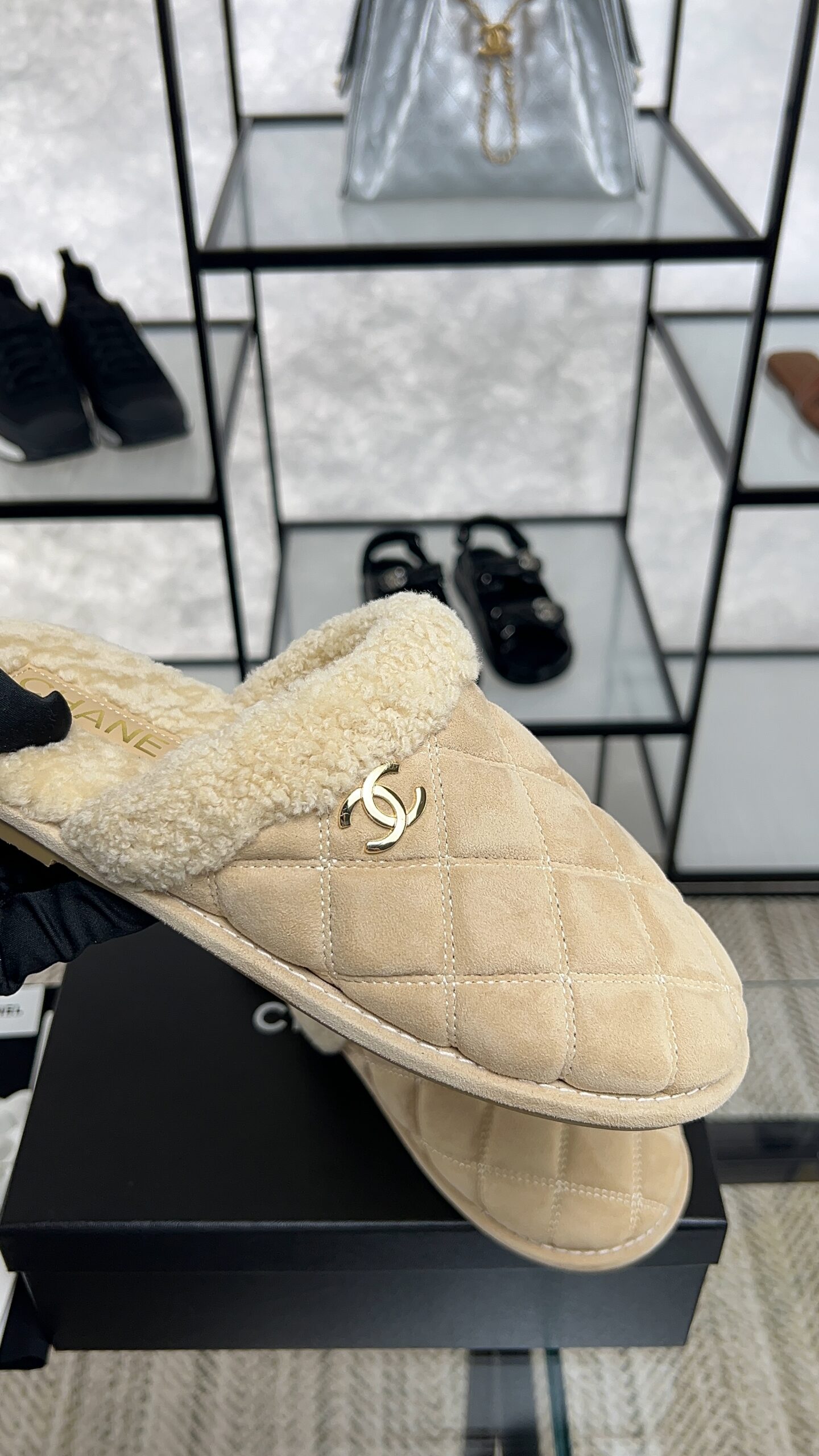 Be the first to review “Chanel CC Suede Shearling Mule Slippers”