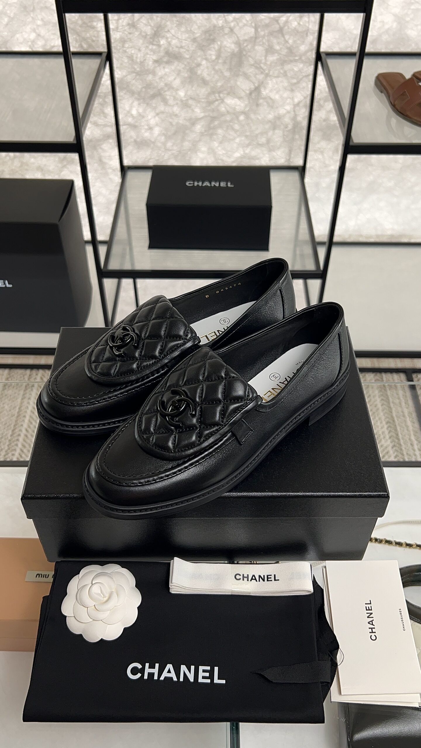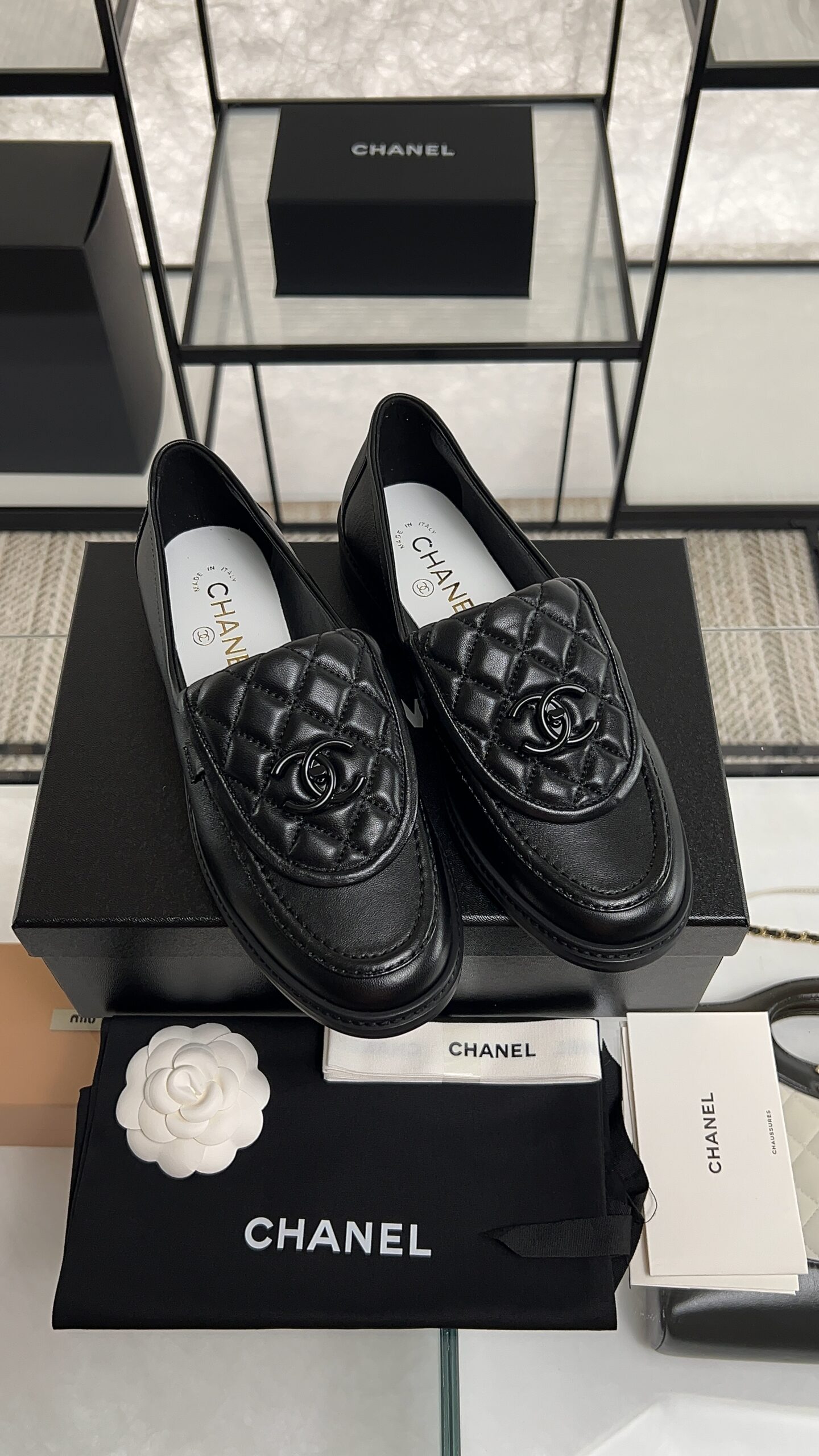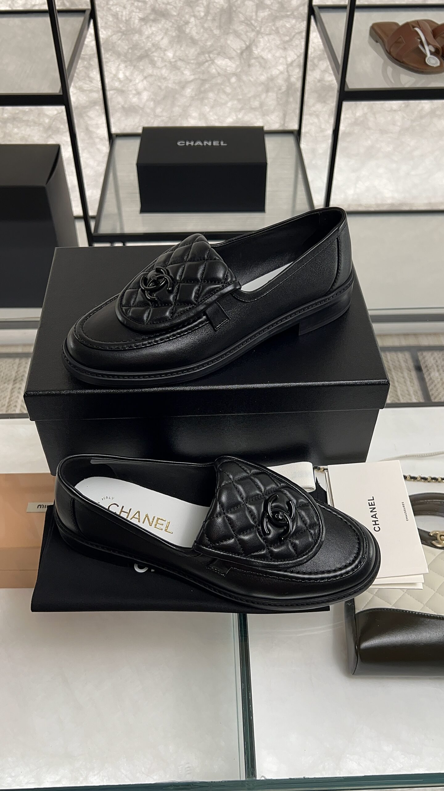 Chanel Lambskin Quilted CC Turnlock Loafers Black