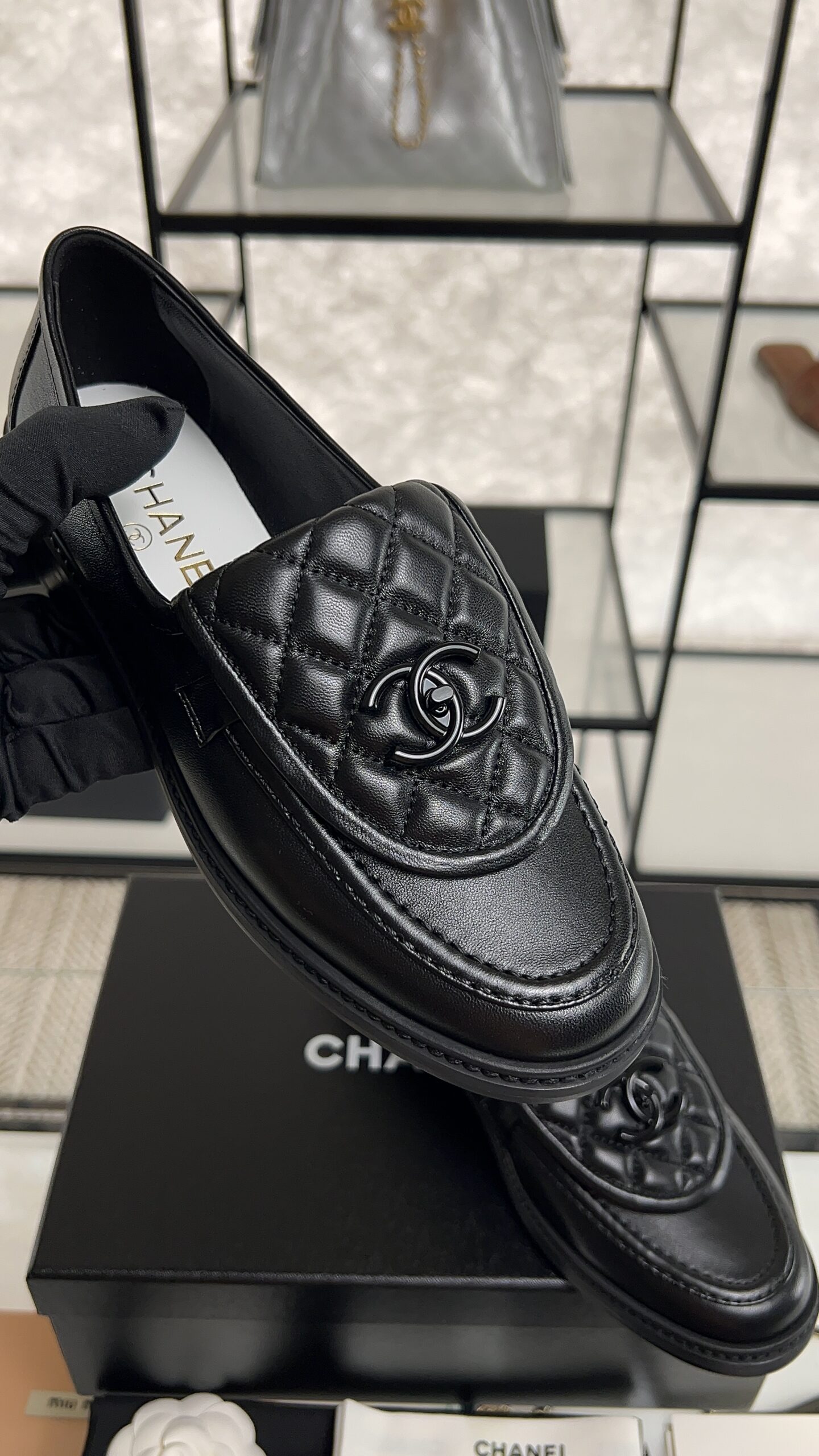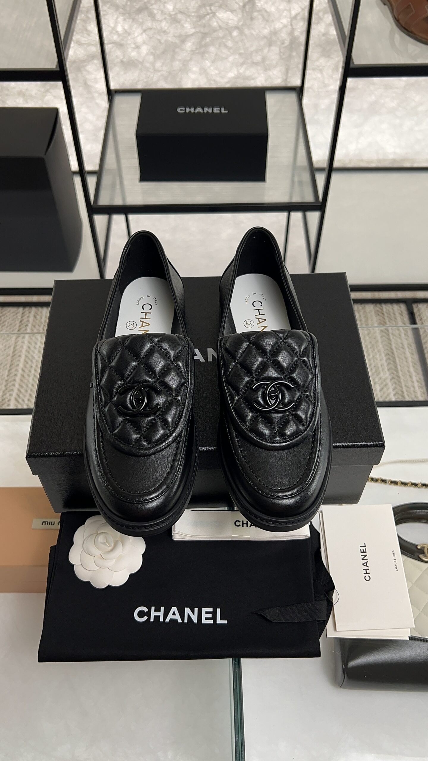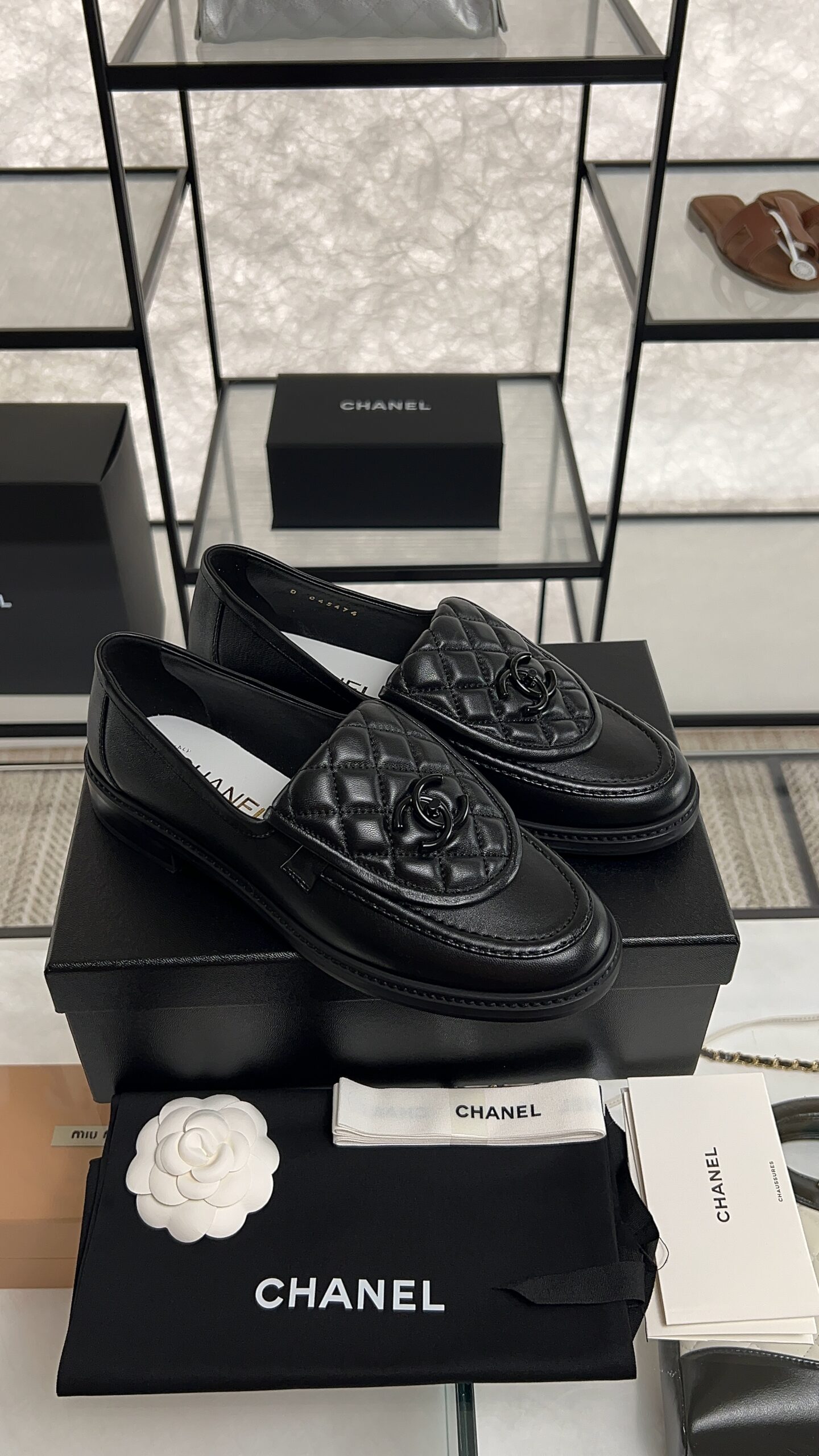 Chanel Lambskin Quilted CC Turnlock Loafers Black