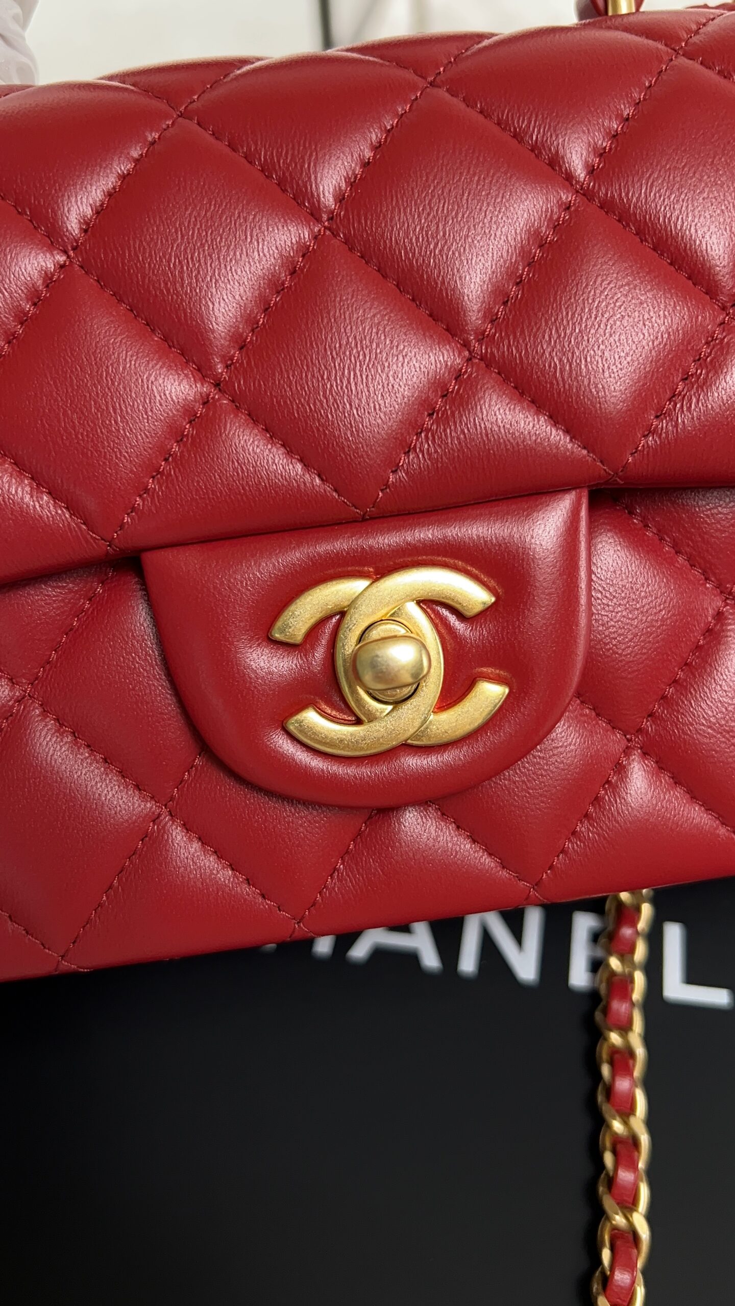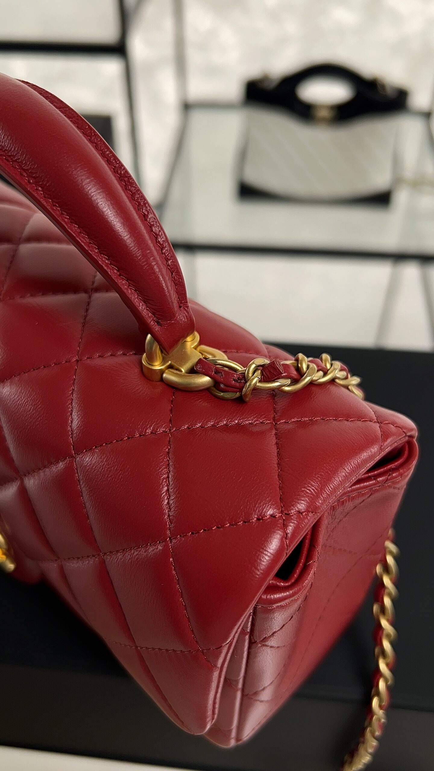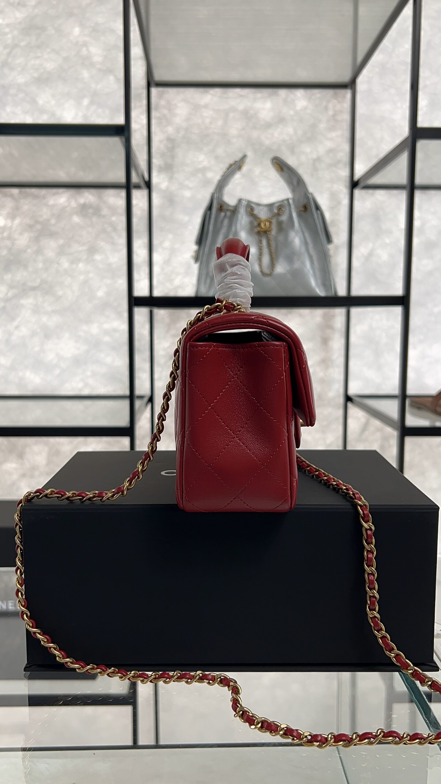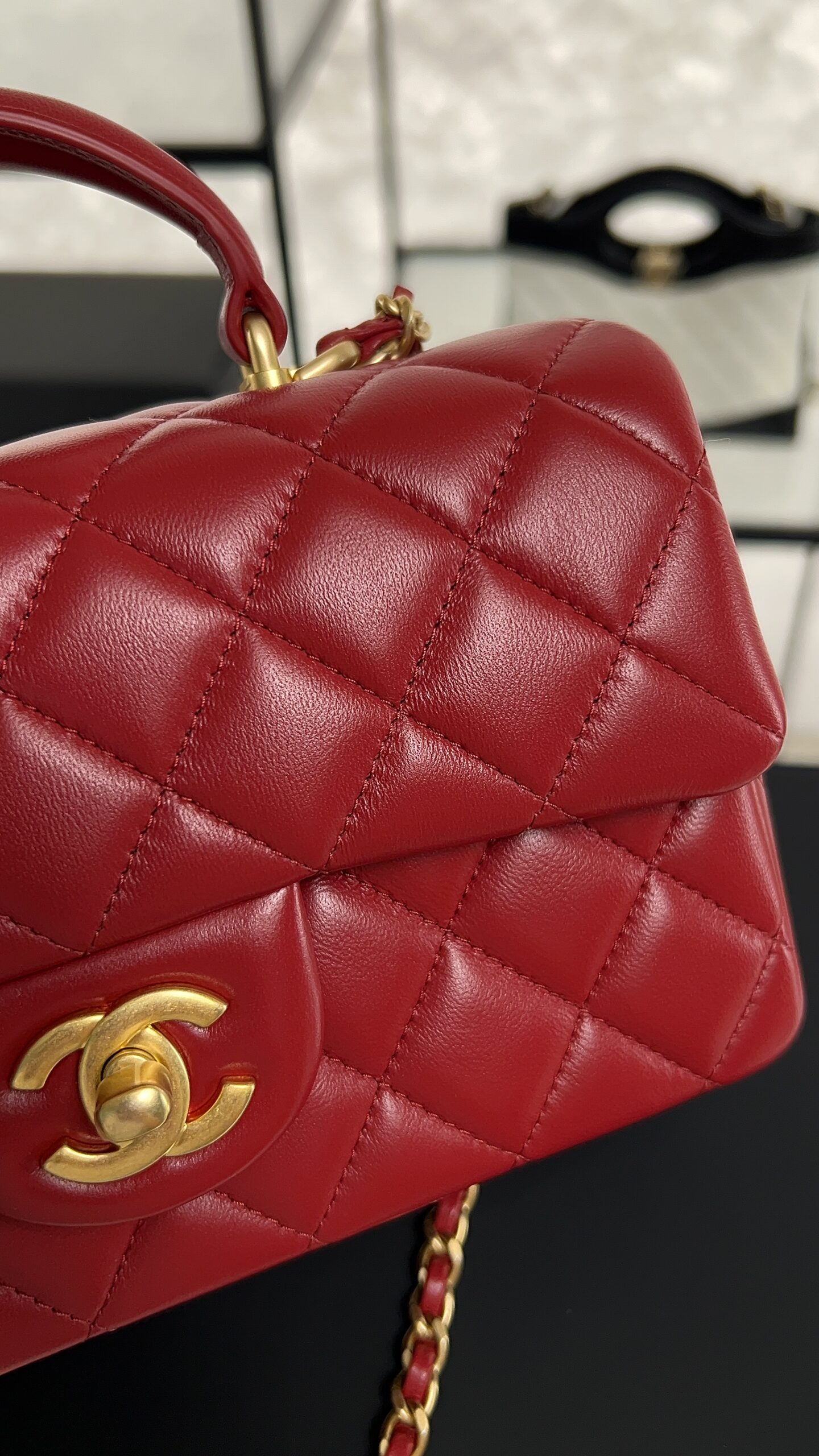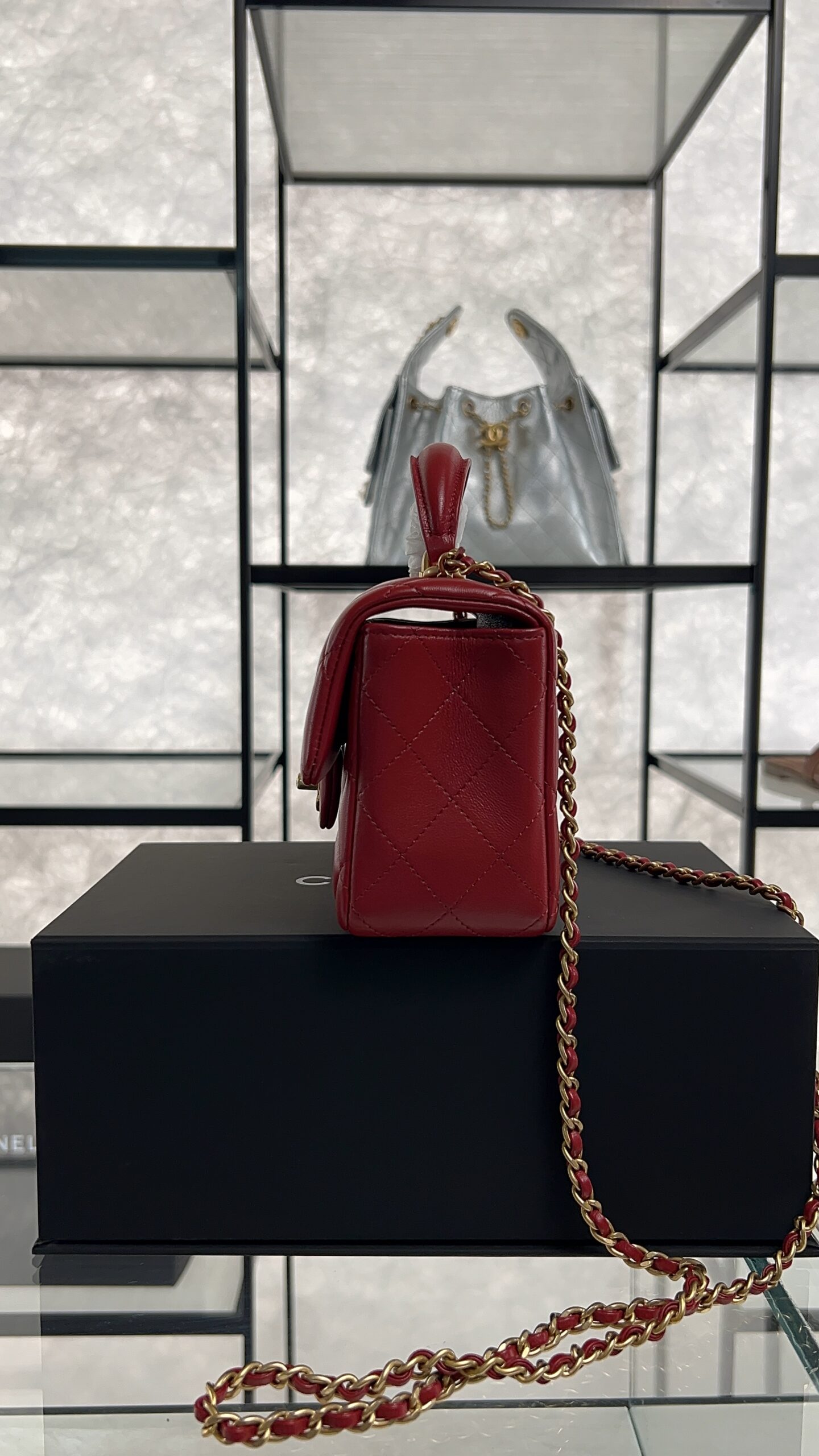 Be the first to review “Chanel Lambskin Quilted Mini Top Handle Rectangular Flap Rose”
