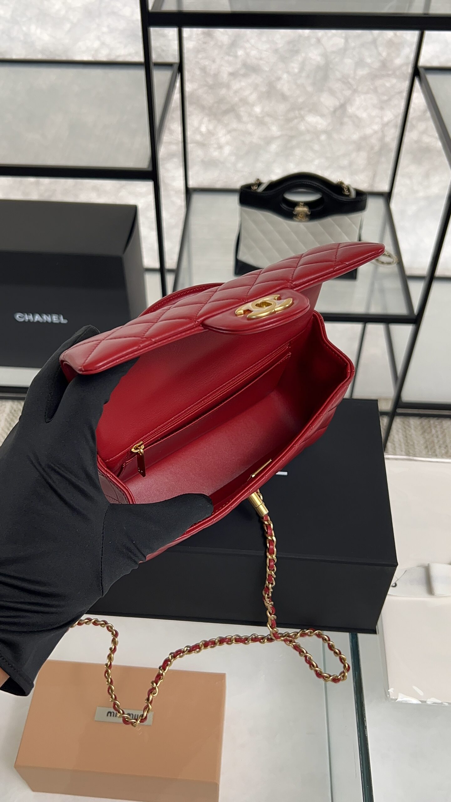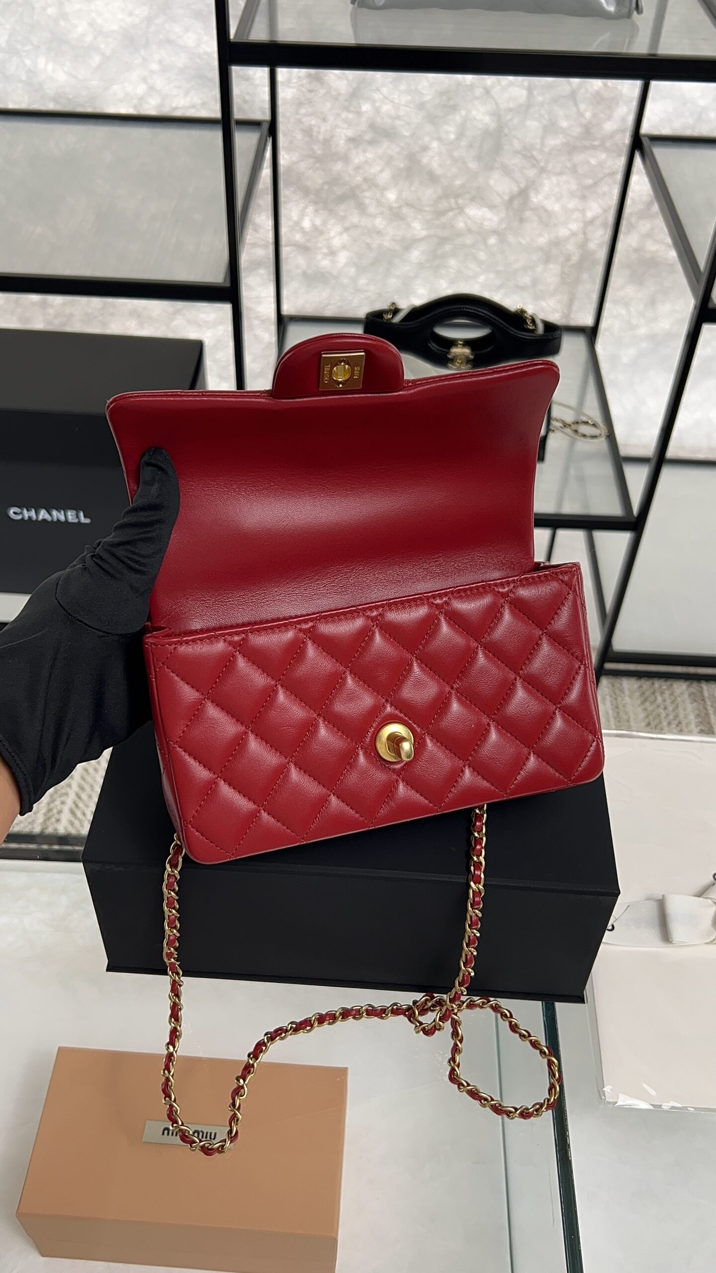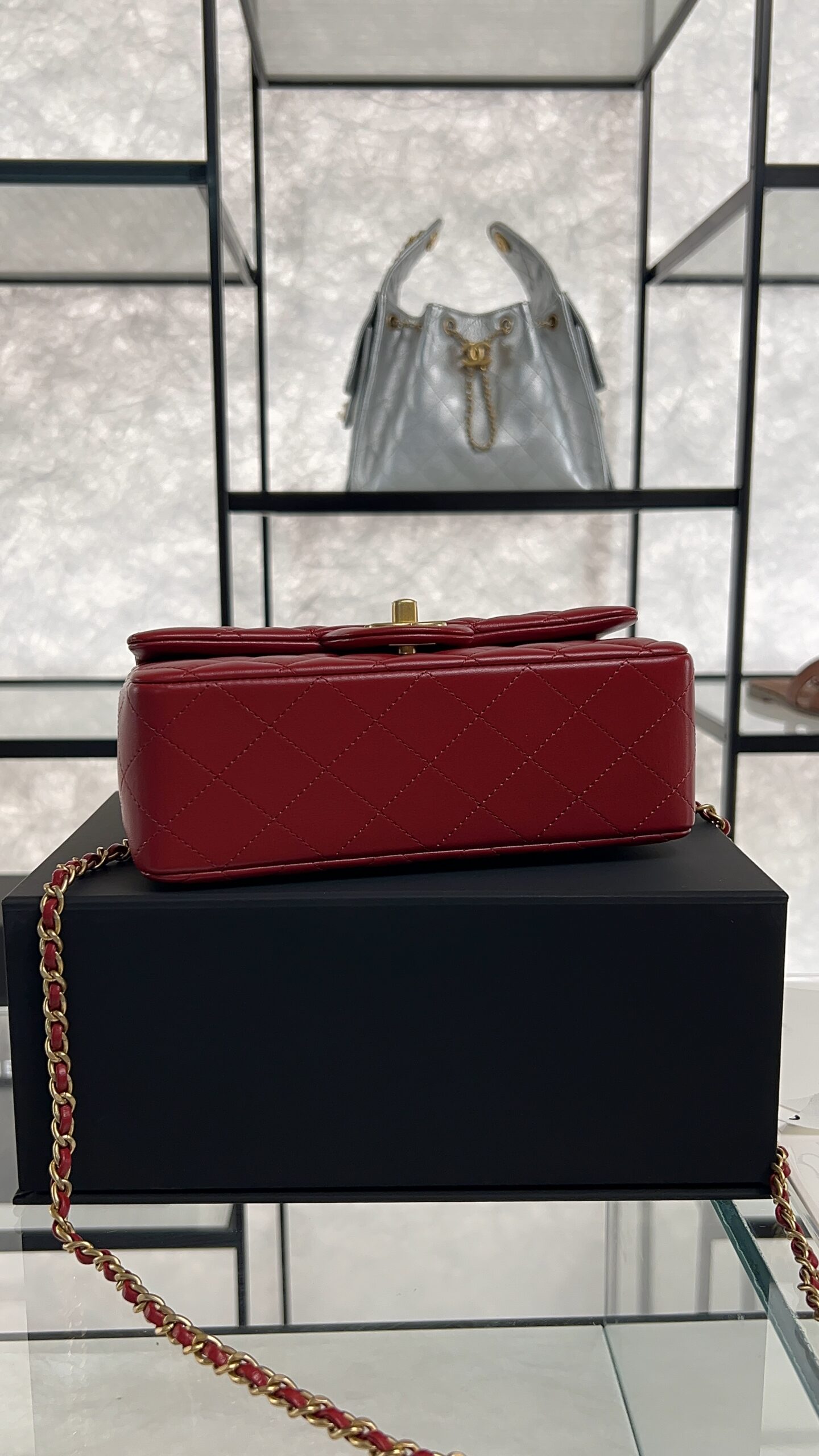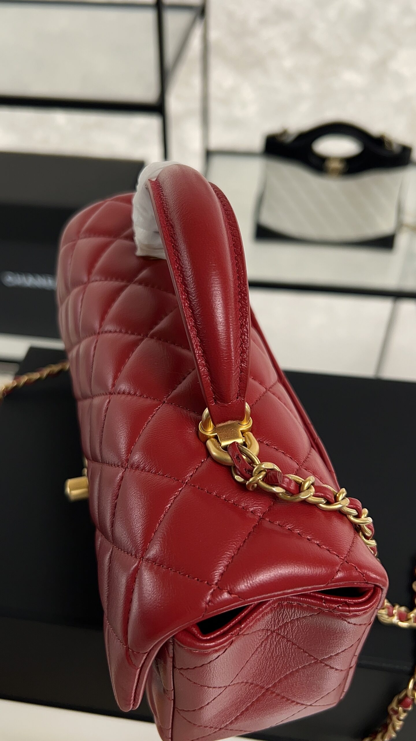 Be the first to review “Chanel Lambskin Quilted Mini Top Handle Rectangular Flap Rose”